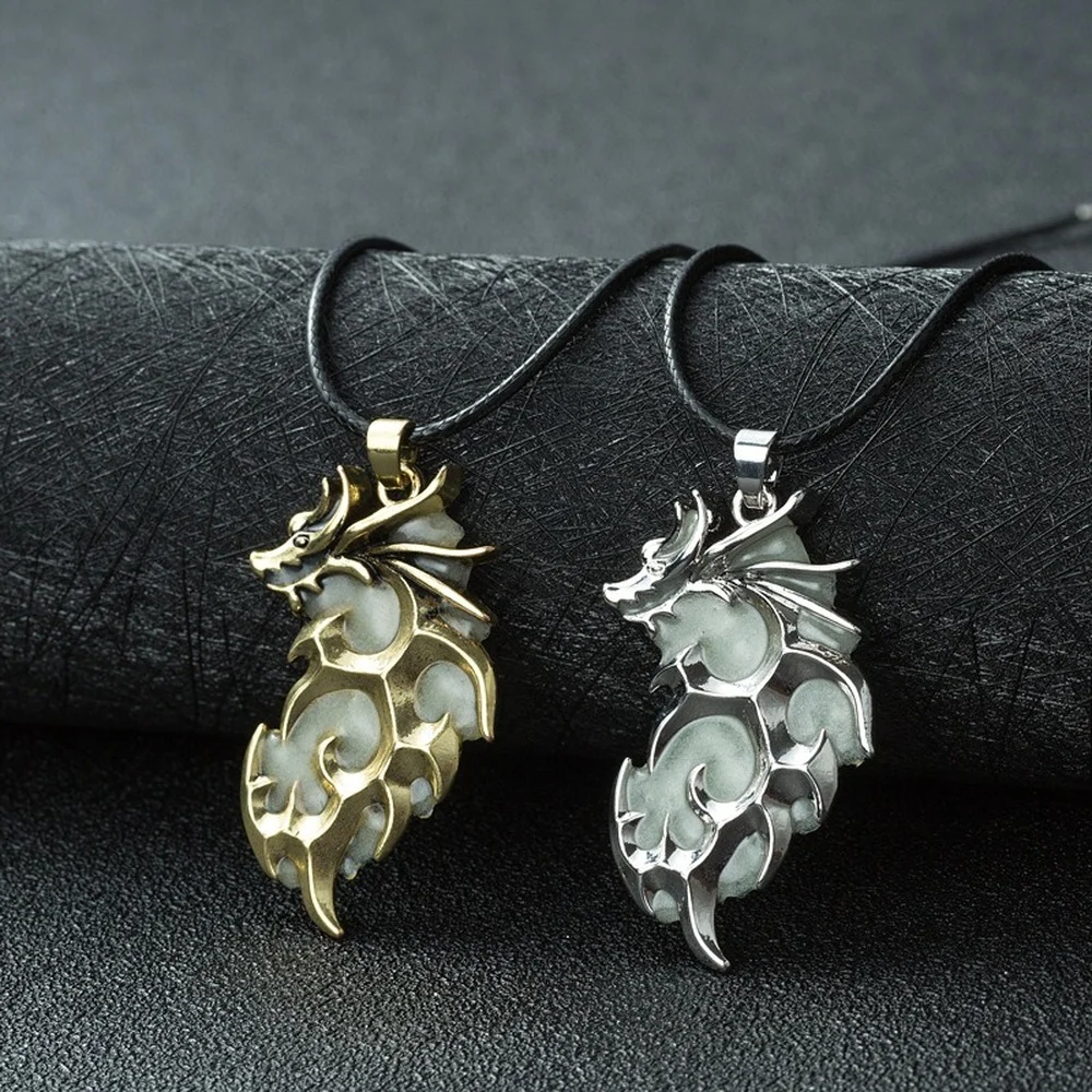 2021 Рождественский летающий дракон, старинное серебряное ФЛУОРЕСЦЕНТНОЕ ожерелье, светящаяся лампочка в темноте для мужчин и женщин