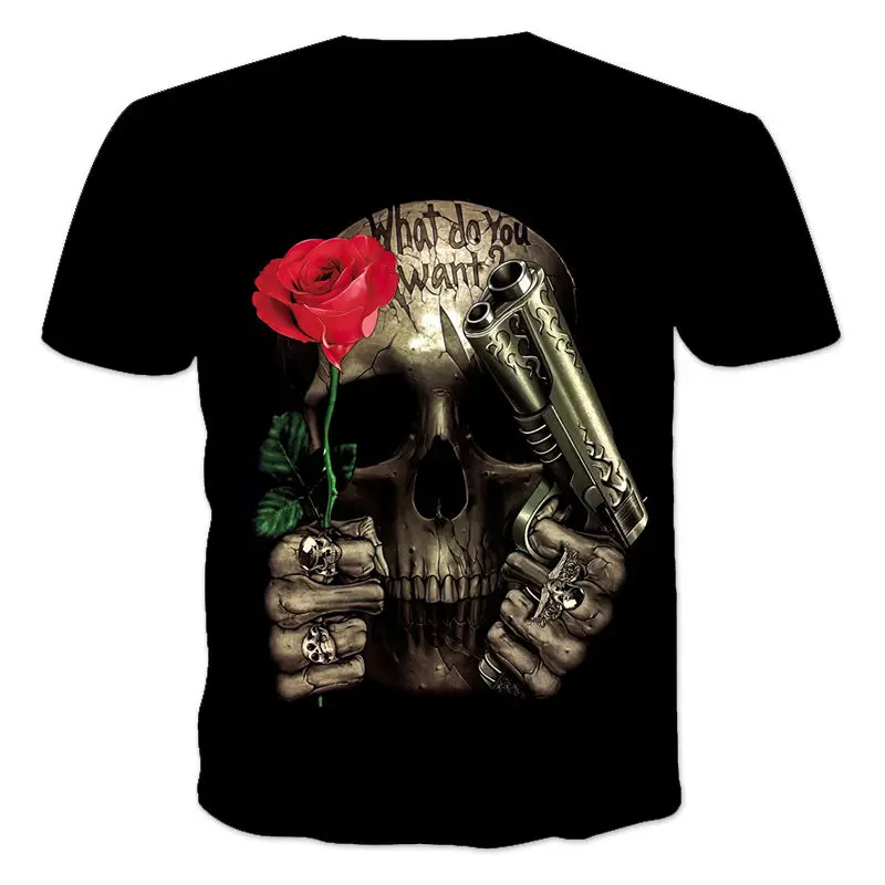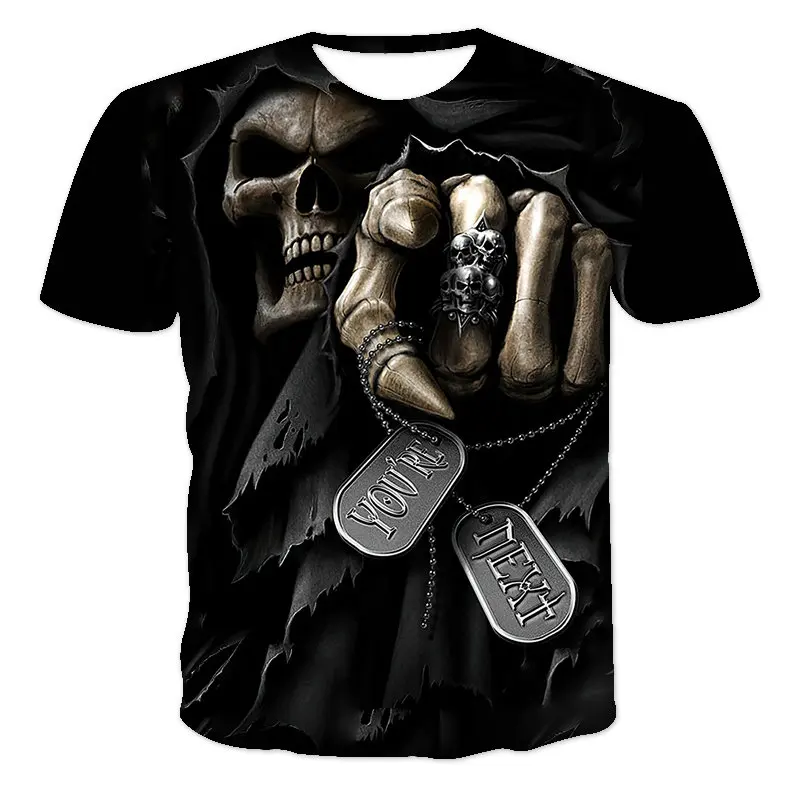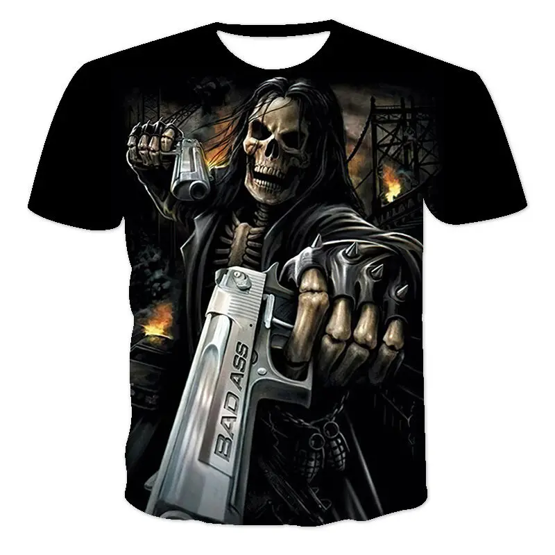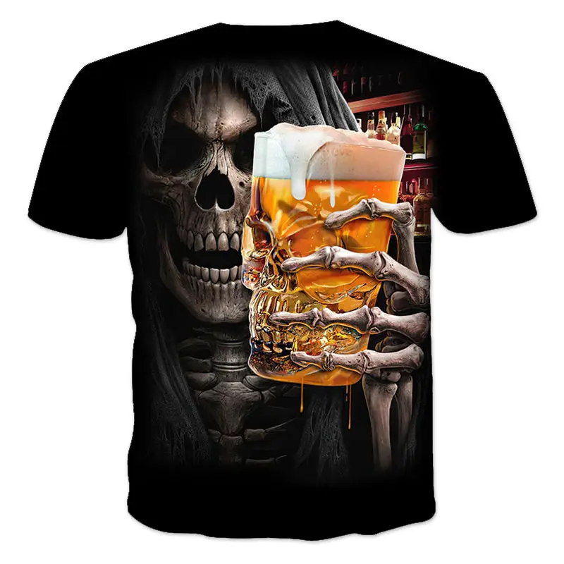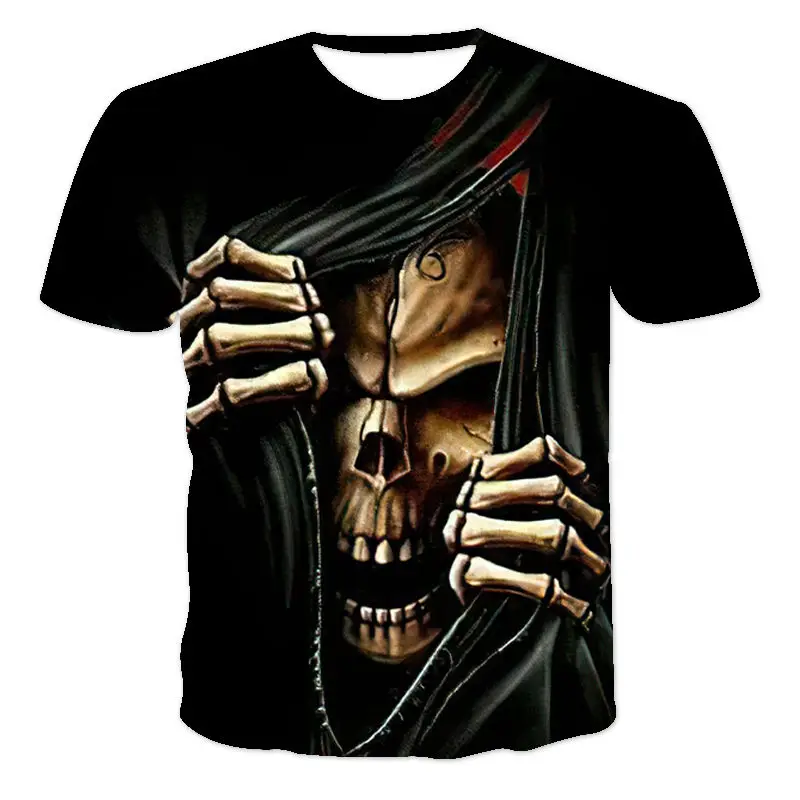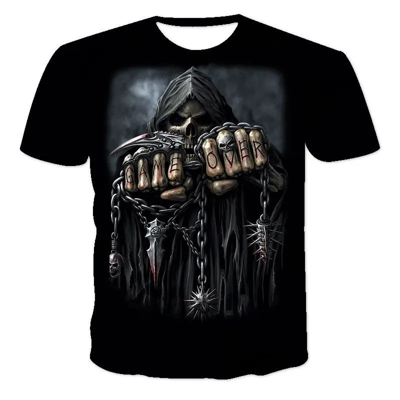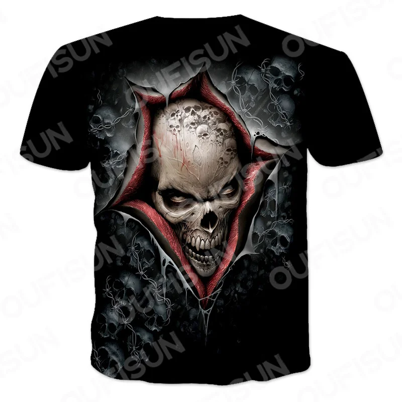 Футболка мужская с коротким рукавом и круглым вырезом, Свободный Повседневный удобный топ в стиле ретро, с 3D-принтом черепа, уличная одежда в стиле хип-хоп, лето