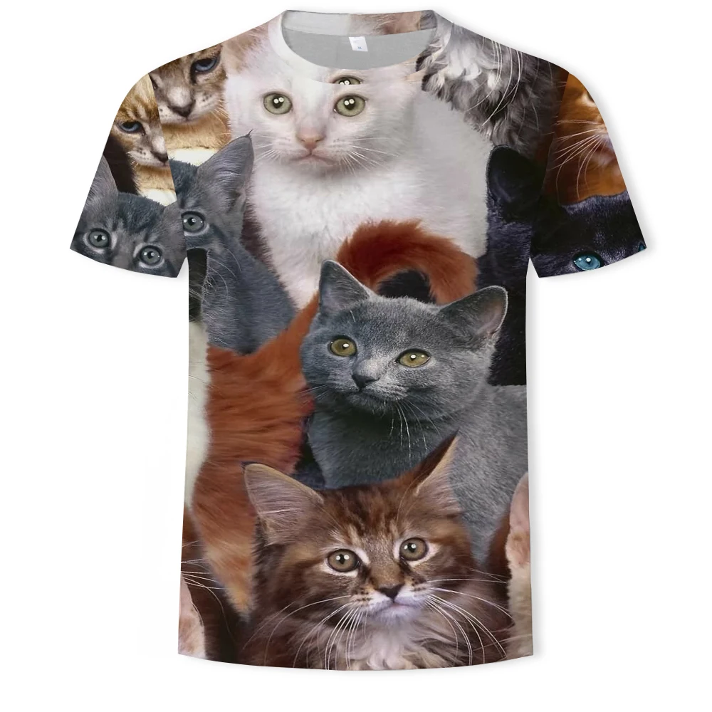 Футболка с изображением животных и кошек, летняя модная повседневна...