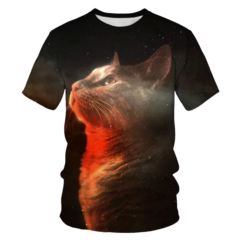 2020 новая Галактика Космос 3D футболка милая маленькая кошка ест Т...
