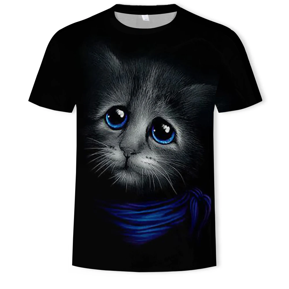 Мужская и женская футболка с 3D принтом кота, модная футболка с кру...