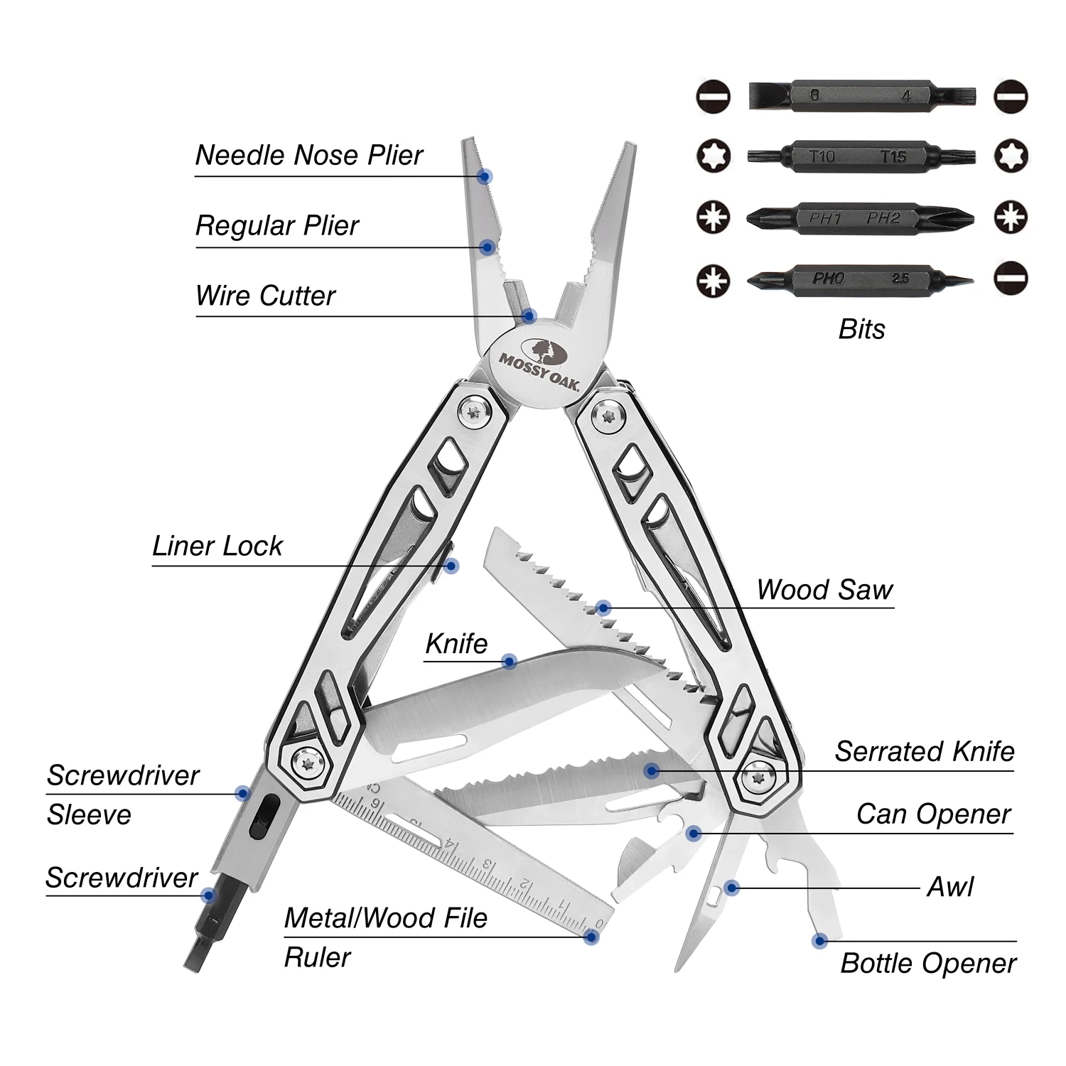 Многофункциональные плоскогубцы MOSSY OAK 21 в 1, портативный карманный нож из нержавеющей стали с футляром для кемпинга и выживания на природе