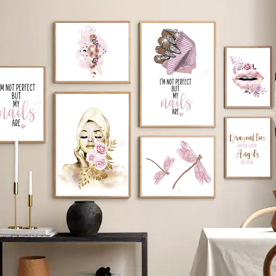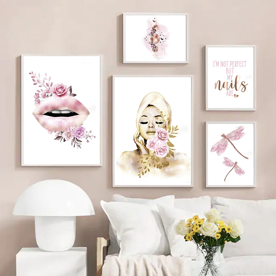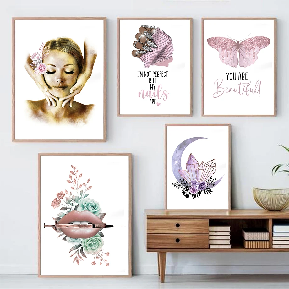 Ботокс для губ, спа, Бабочка, Nail Tech, луна, настенное искусство, холст, живопись, скандинавские постеры и принты, настенные картины для искусства