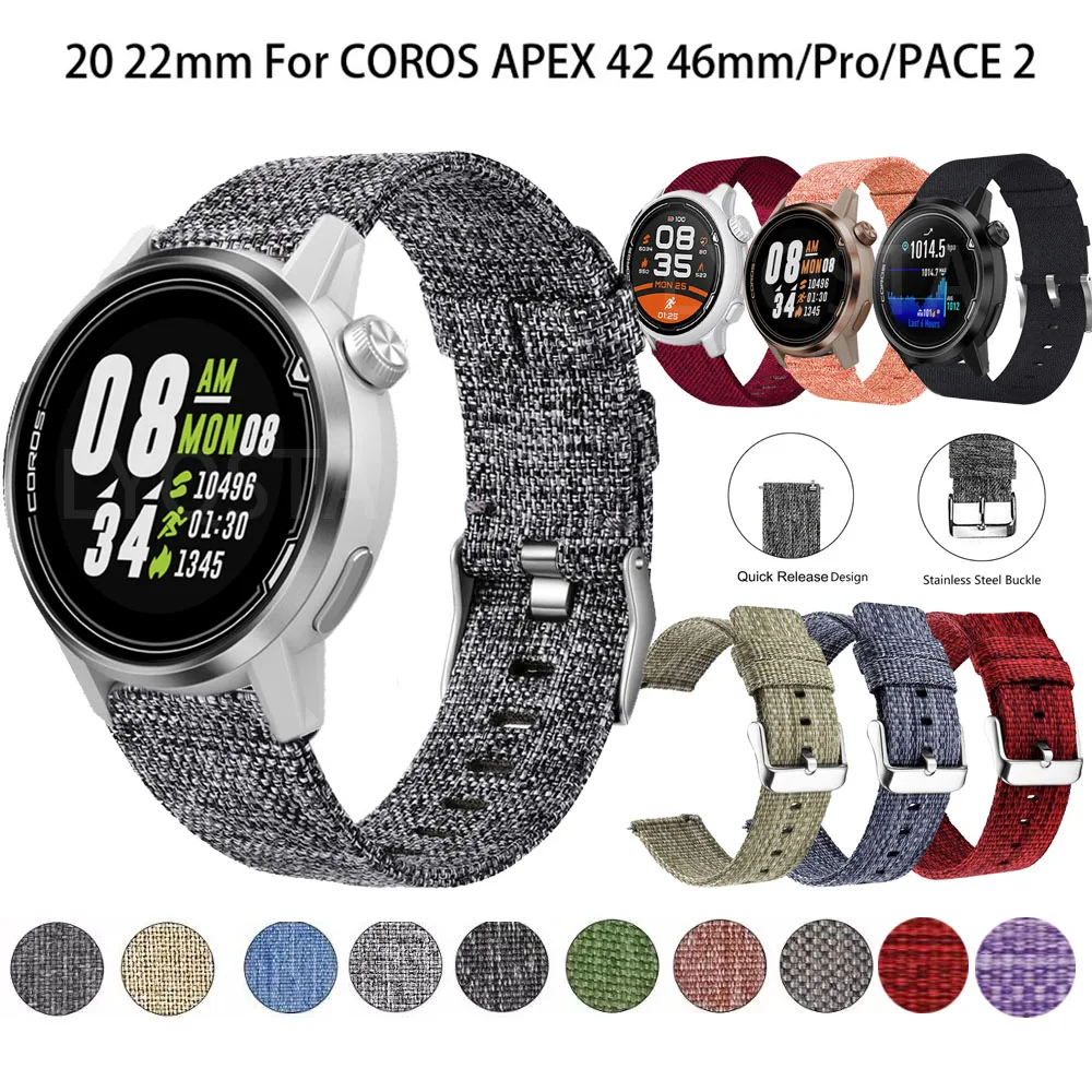 Смарт-часы нейлоновый холщовый ремешок для COROS APEX Pro/42 мм 46 мм/PACE 2 20 22 мм ремешок для часов быстрая установка аксессуары для браслетов