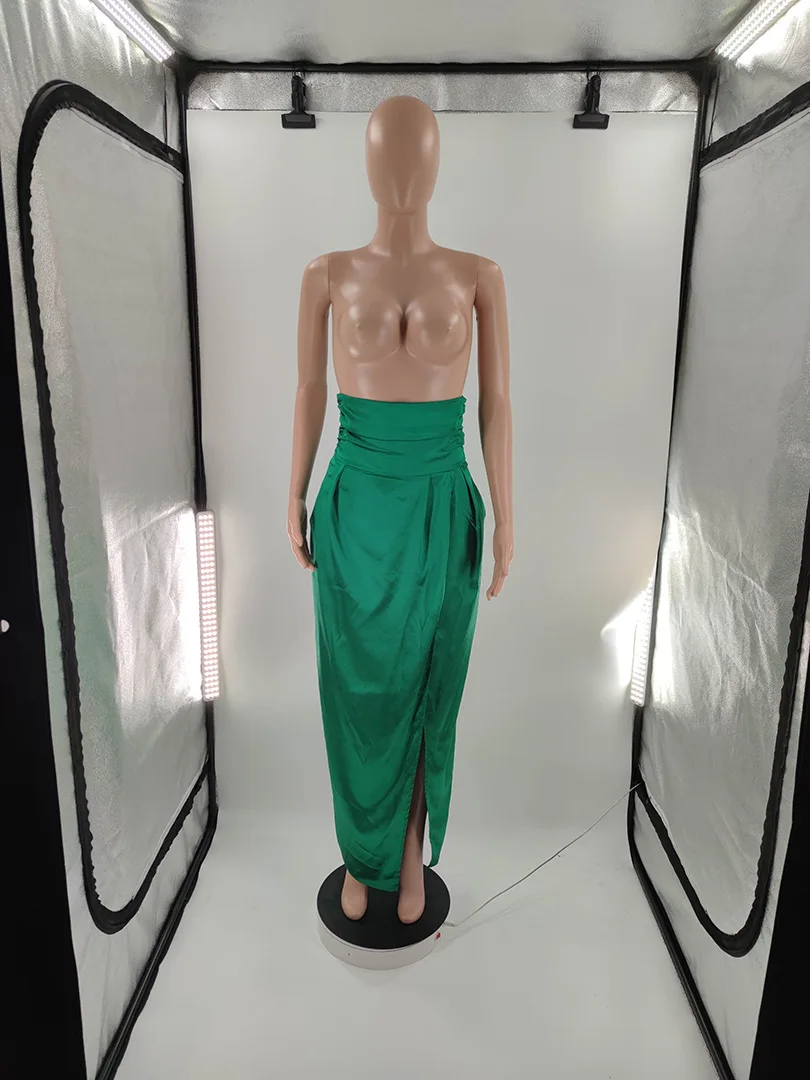 Женская длинная юбка Y2k с высокой талией, свободный корсет с разрезом, юбка до щиколотки, новинка 2021, модная однотонная элегантная шикарная пикантная зеленая юбка для вечерние