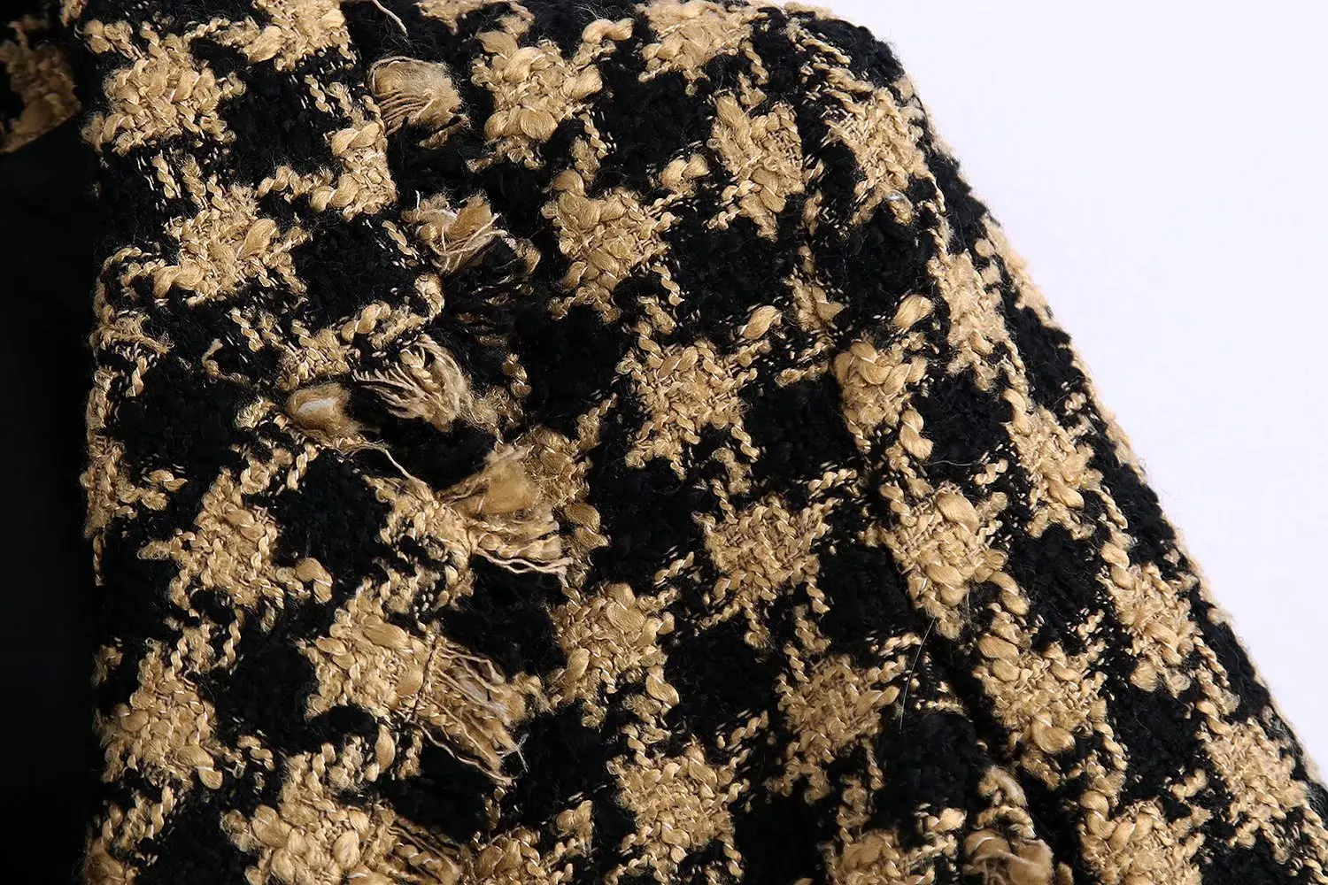 Женские винтажные костюмы из блейзера с принтом гусиные лапки, Укор...