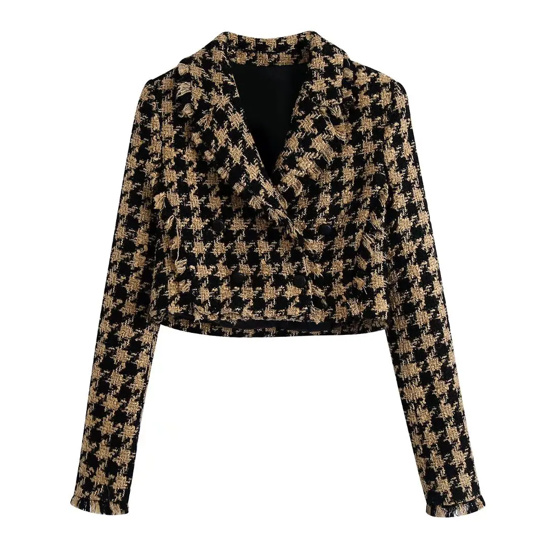 Женский клетчатый Блейзер, укороченный пиджак с длинным рукавом, тв...