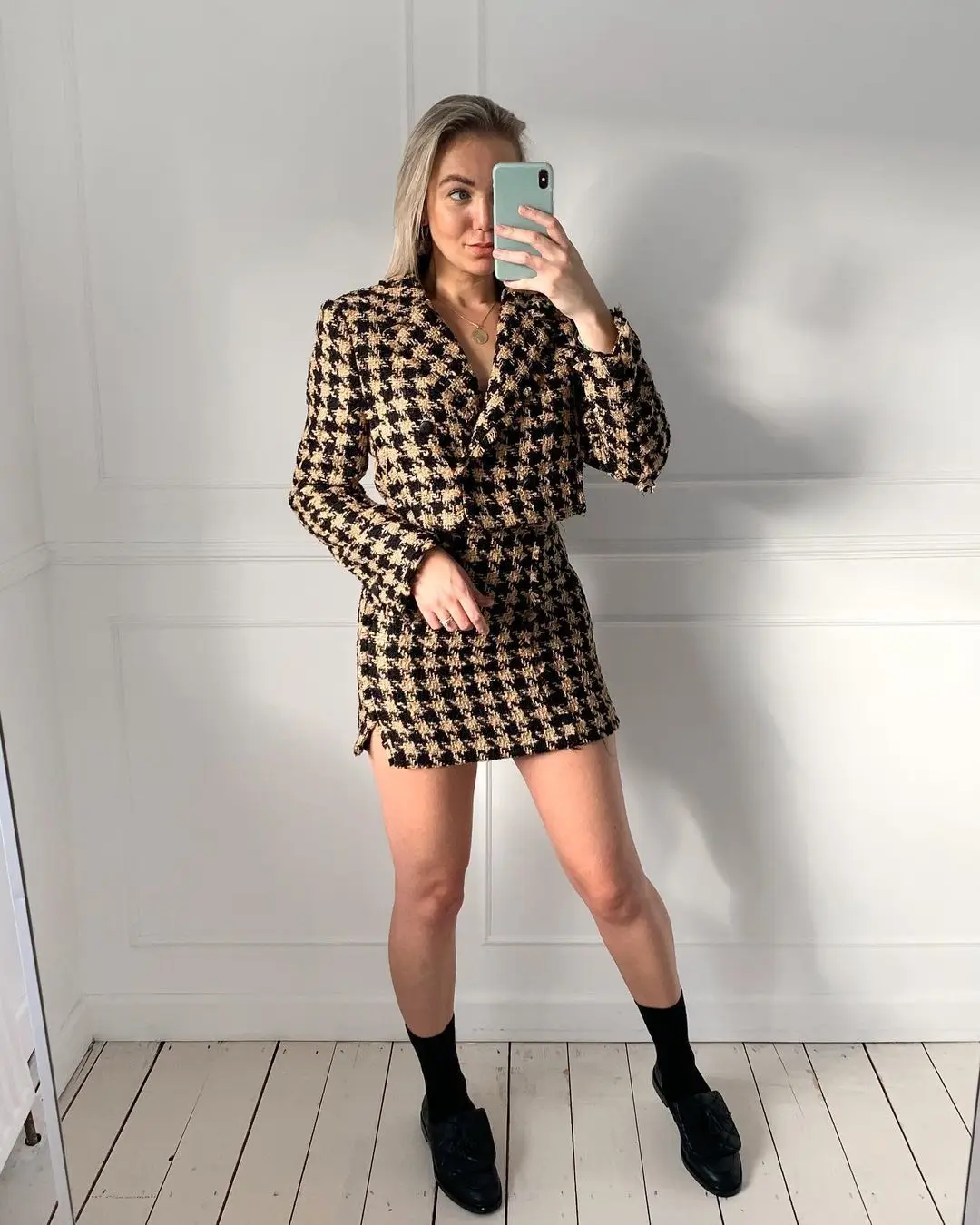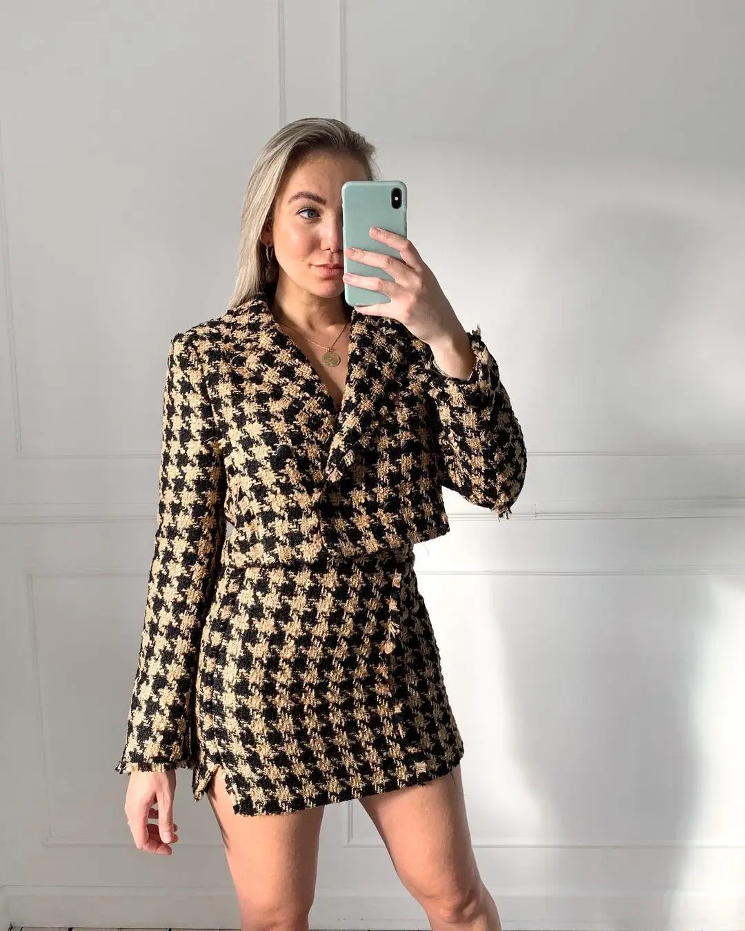 Женский твидовый комплект из двух предметов XEASY, винтажный офисны...