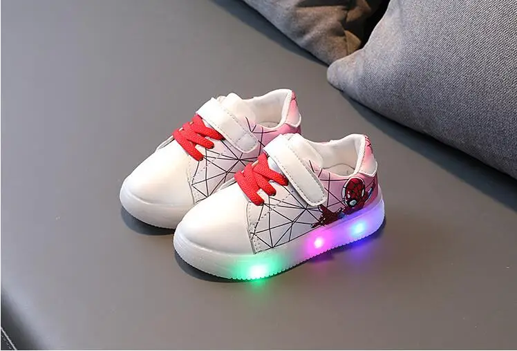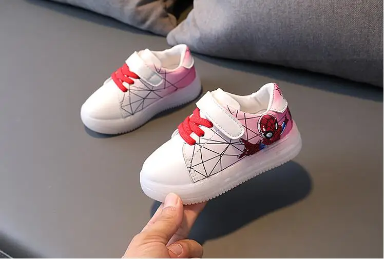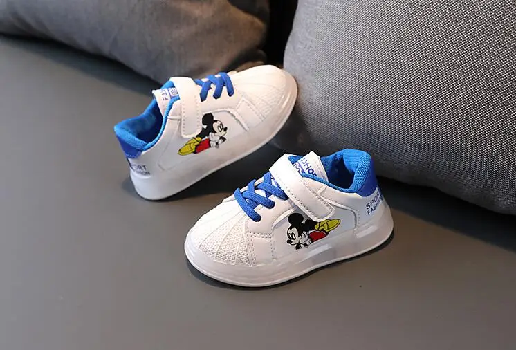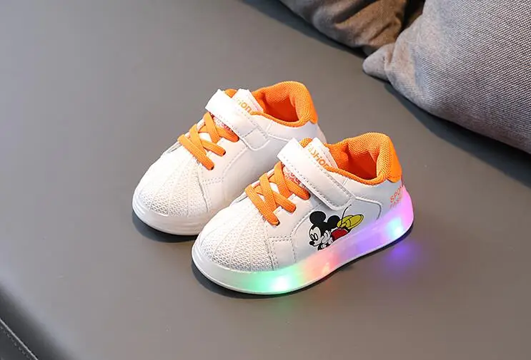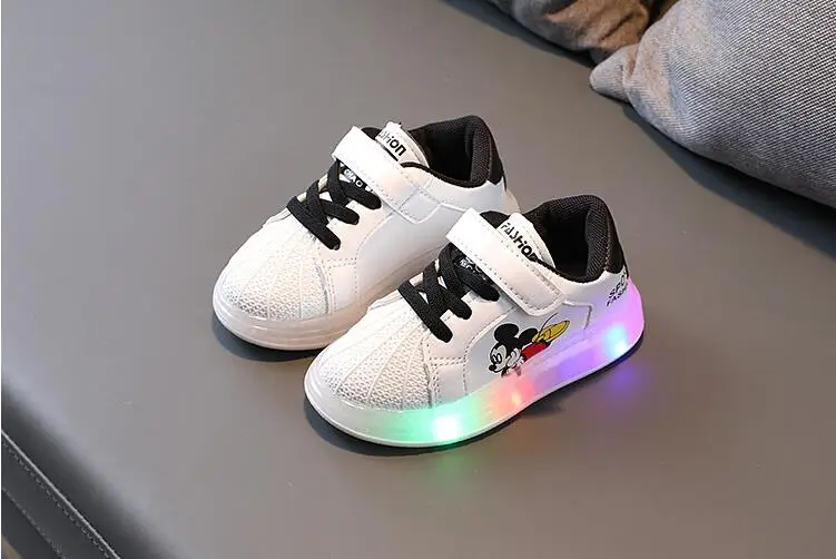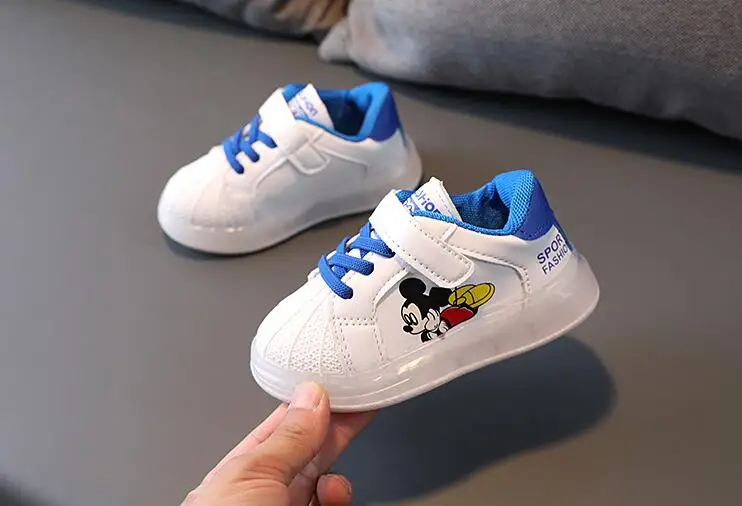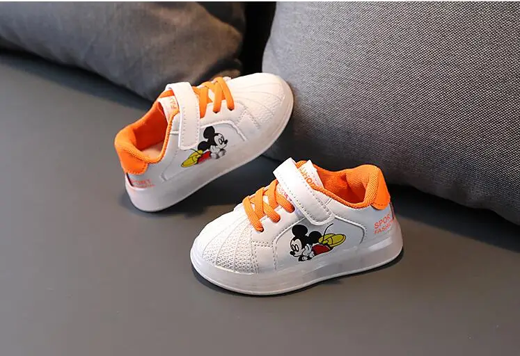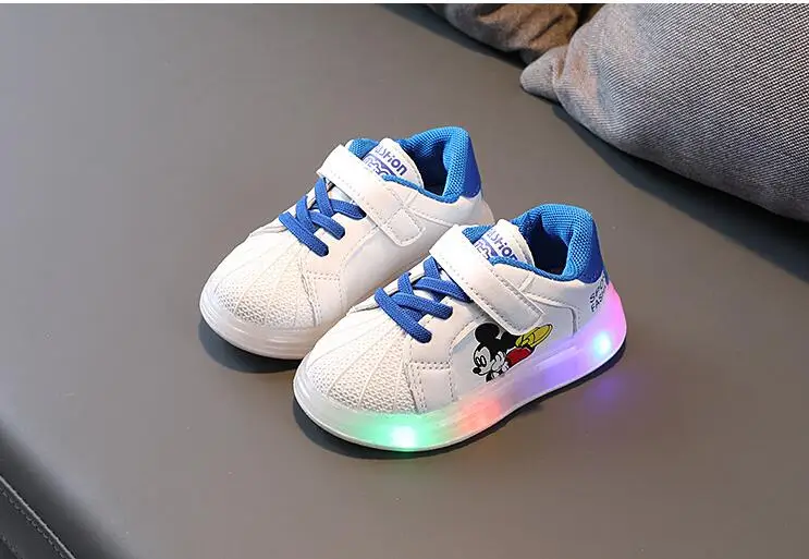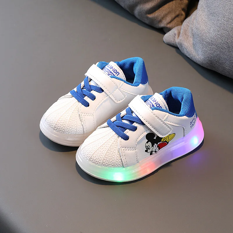Детские светящиеся туфли с мультяшным героем Диснея, Микки Маус, Детские светодиодные кроссовки светильник кой, повседневная обувь для маленьких мальчиков и девочек