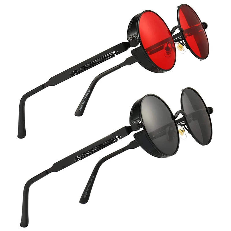 Солнцезащитные очки в стиле стимпанк для мужчин и женщин, модные круглые, в металлической оправе, брендовые дизайнерские винтажные, UV400