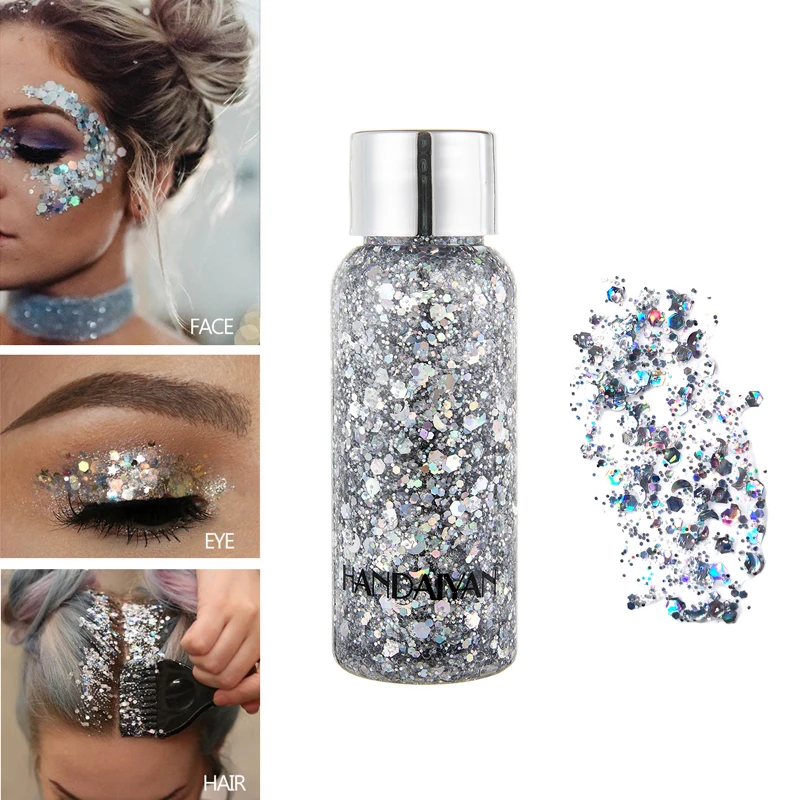 Украшения для лица, тени для век, мерцающий пигмент, блеск для тела, лица, глаз, гель с блестками, крем для глаз, блестящая кожа, для лица, праздничный косметический блеск