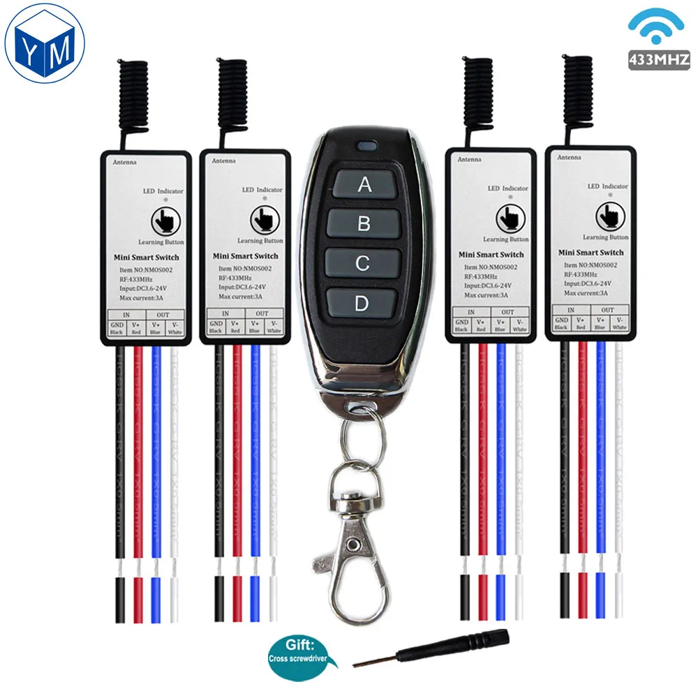 Универсальный беспроводной светильник ель света для умного дома, 433 МГц, 3,6 В постоянного тока, 6 в, 9 В, 12 В, релейный приемник с передатчиком для питания, светодиодная лампа сделай сам