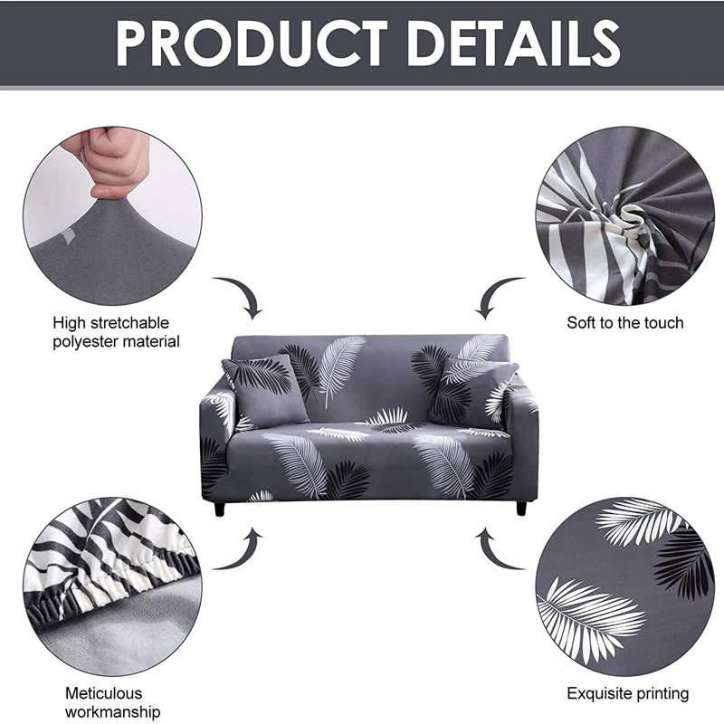 Чехол для дивана эластичный, с принтом листьев, 1234-местный