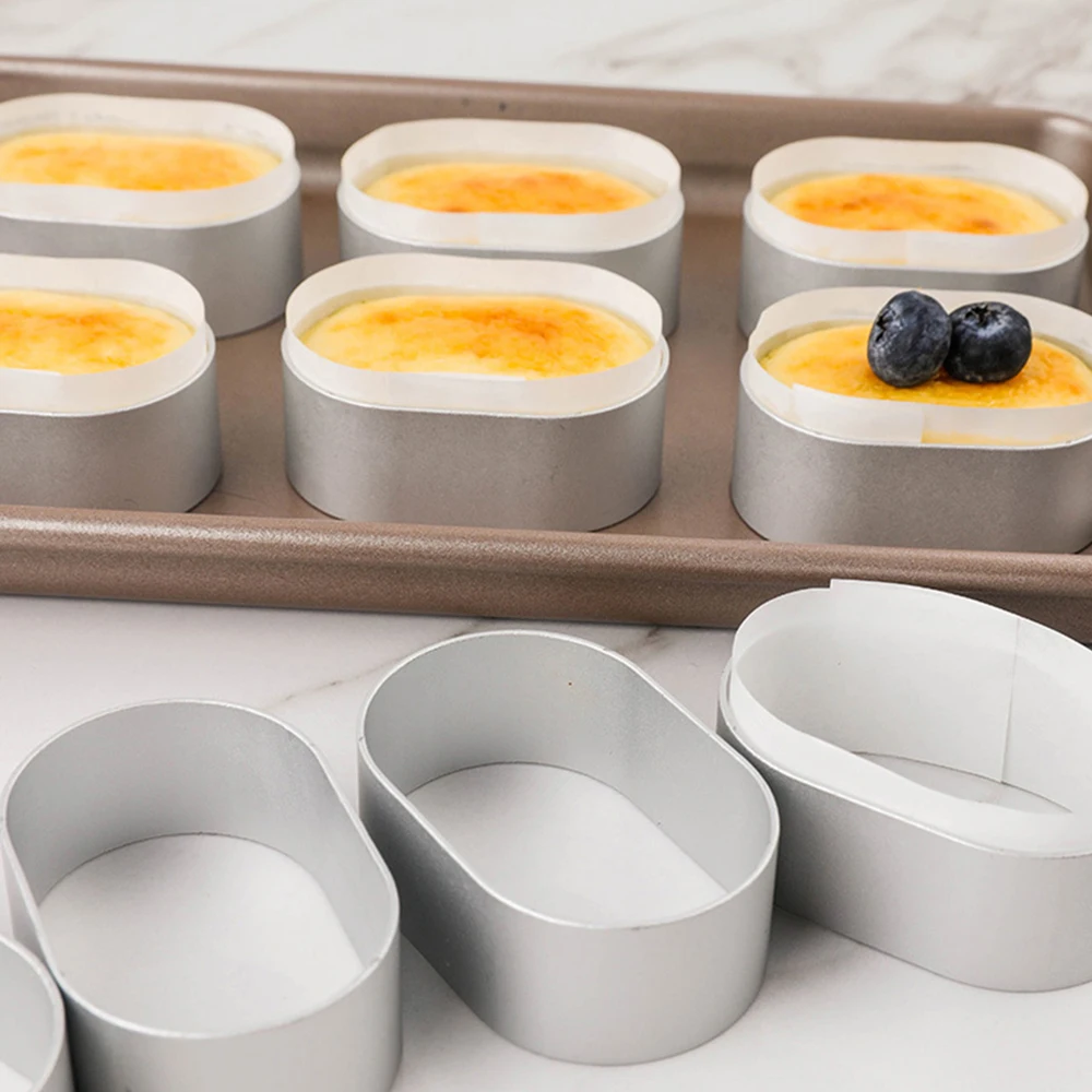 Овальная полуобработанная алюминиевая Мусса 10 шт. Форма для сыра кольцо для яйца с 100 шт. отделение для сыра бумажная форма для выпечки торта пекарни кухни