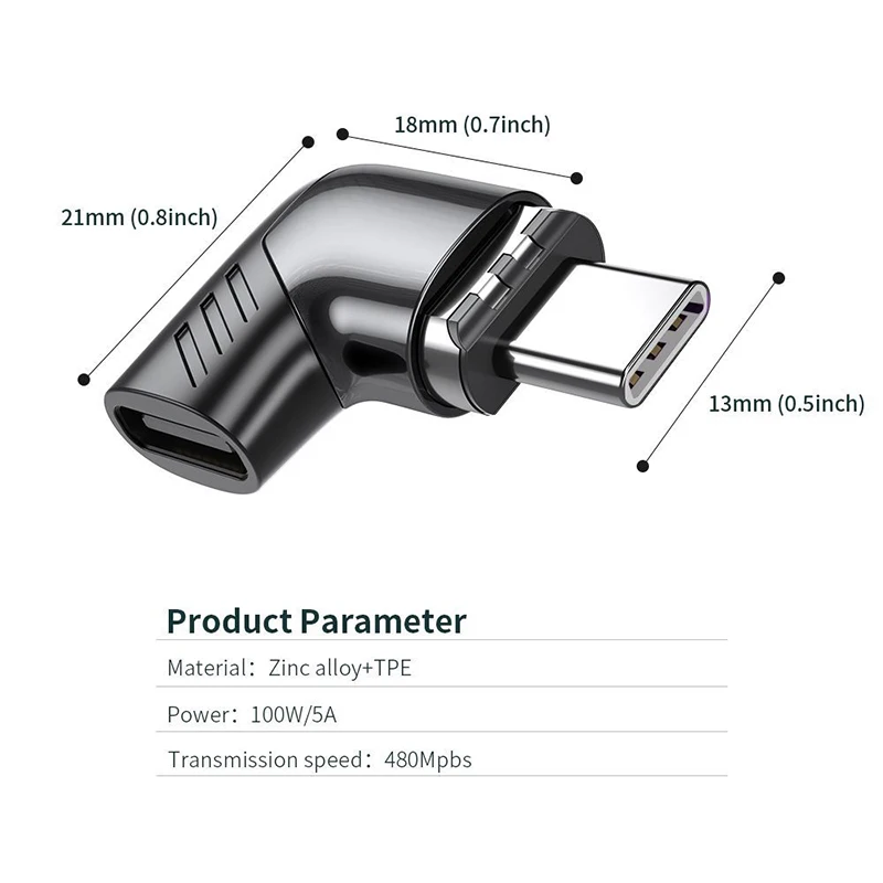 100 Вт локоть Магнитный кабель адаптер Тип C женский интерфейс Быст...