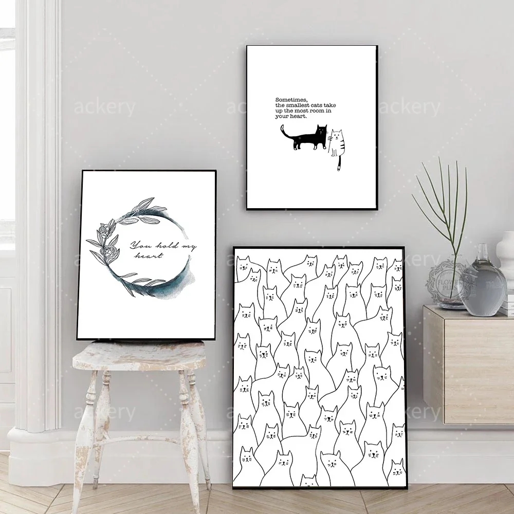 Скандинавский мультфильм абстрактная линия белая кошка Рисование картина домашний декор холст живопись стены Искусство Уникальные постеры и принты для спальни