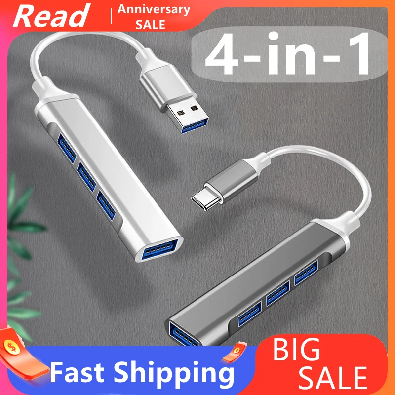 Высокоскоростной USB-концентратор типа C, 4 порта, мульти-разветвитель, адаптер OTG для Lenovo, HUAWEI, Xiaomi, Macbook Pro, 15 Air Pro, аксессуары