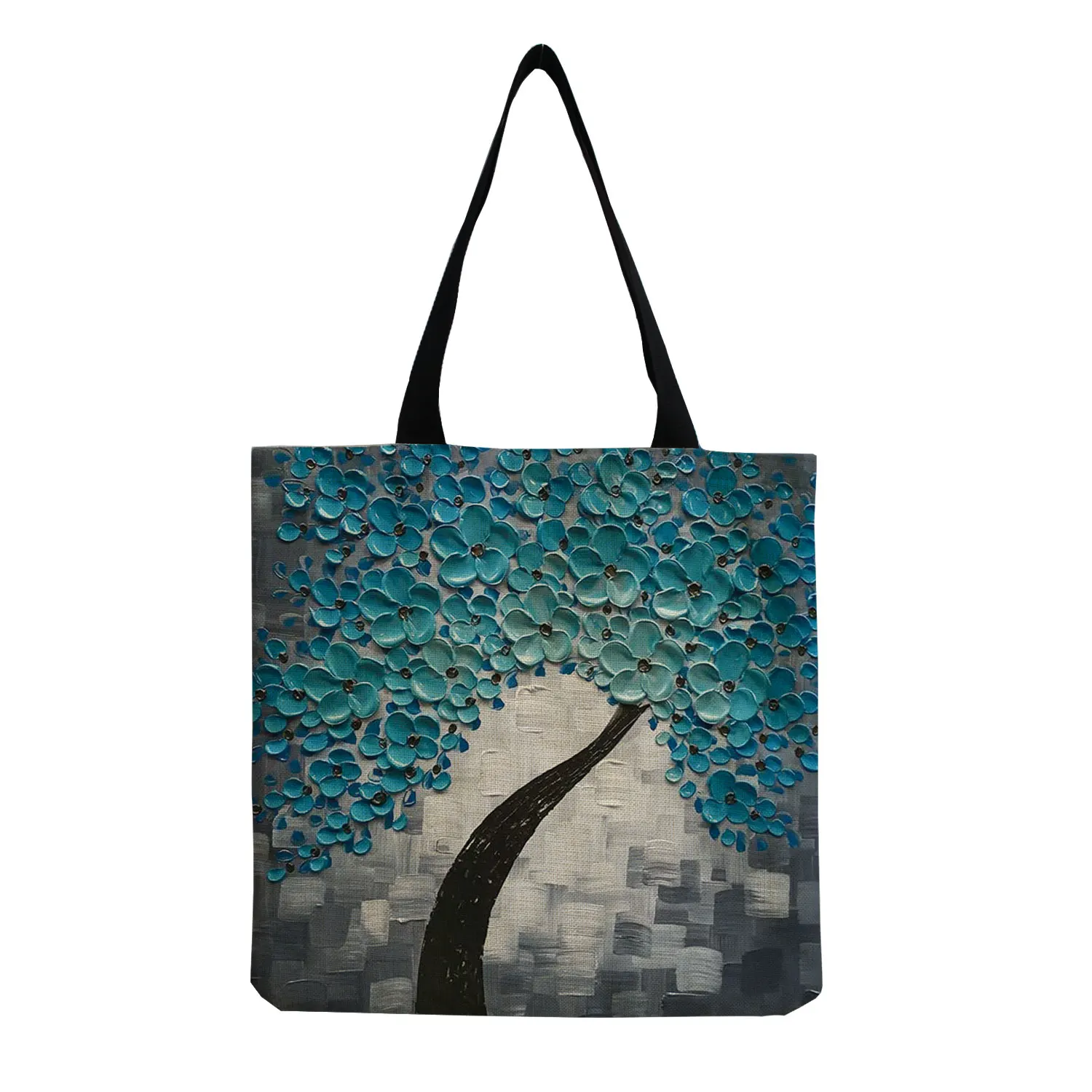 Индивидуальная сумка-тоут с масляным рисунком цветущей вишни для женщин, женские элегантные сумки, многоразовые льняные сумки для покупок с двусторонним рисунком