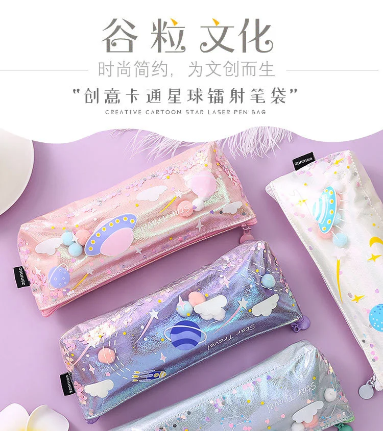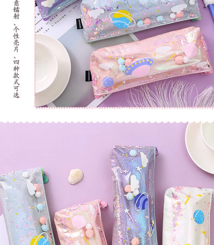 Чехол для карандашей с блестками и звездами, Большой Вместительный чехол для ручки, школьный чехол для макияжа, принадлежности для карандашей, школьный бокс, пенал, канцелярские принадлежности