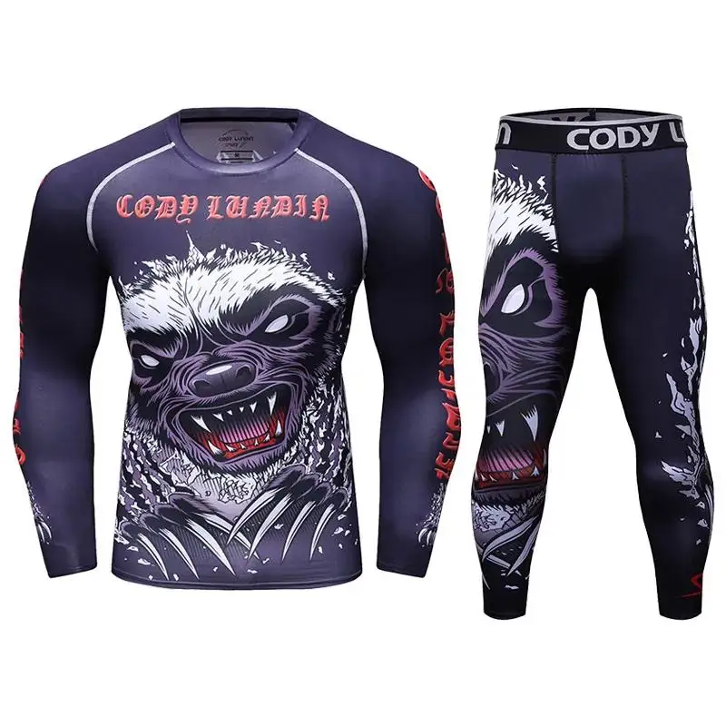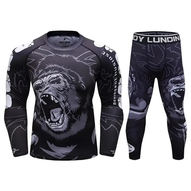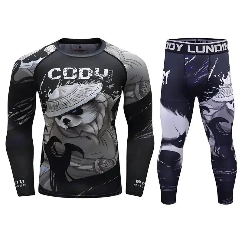 Мужские футболки для ММА, BJJ, Рашгард, спортивный костюм для фитнеса, комплект боксерских футболок, Муай Тай, мужской спортивный костюм для ММА, кикбоксинга, 2 шт.