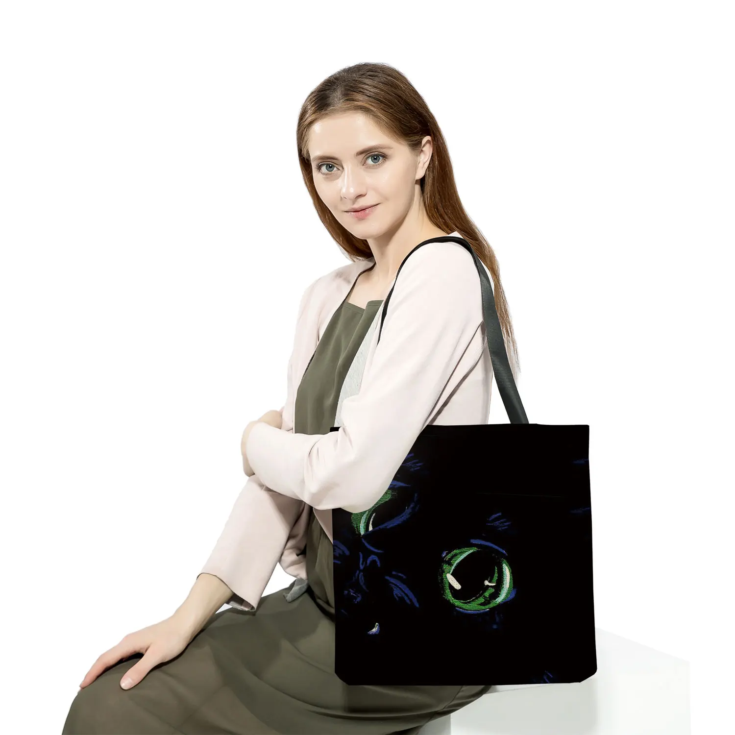 Женская сумка-шоппер с принтом черного кота и животным принтом, многоразовая большая сумка-тоут для покупок из бутика