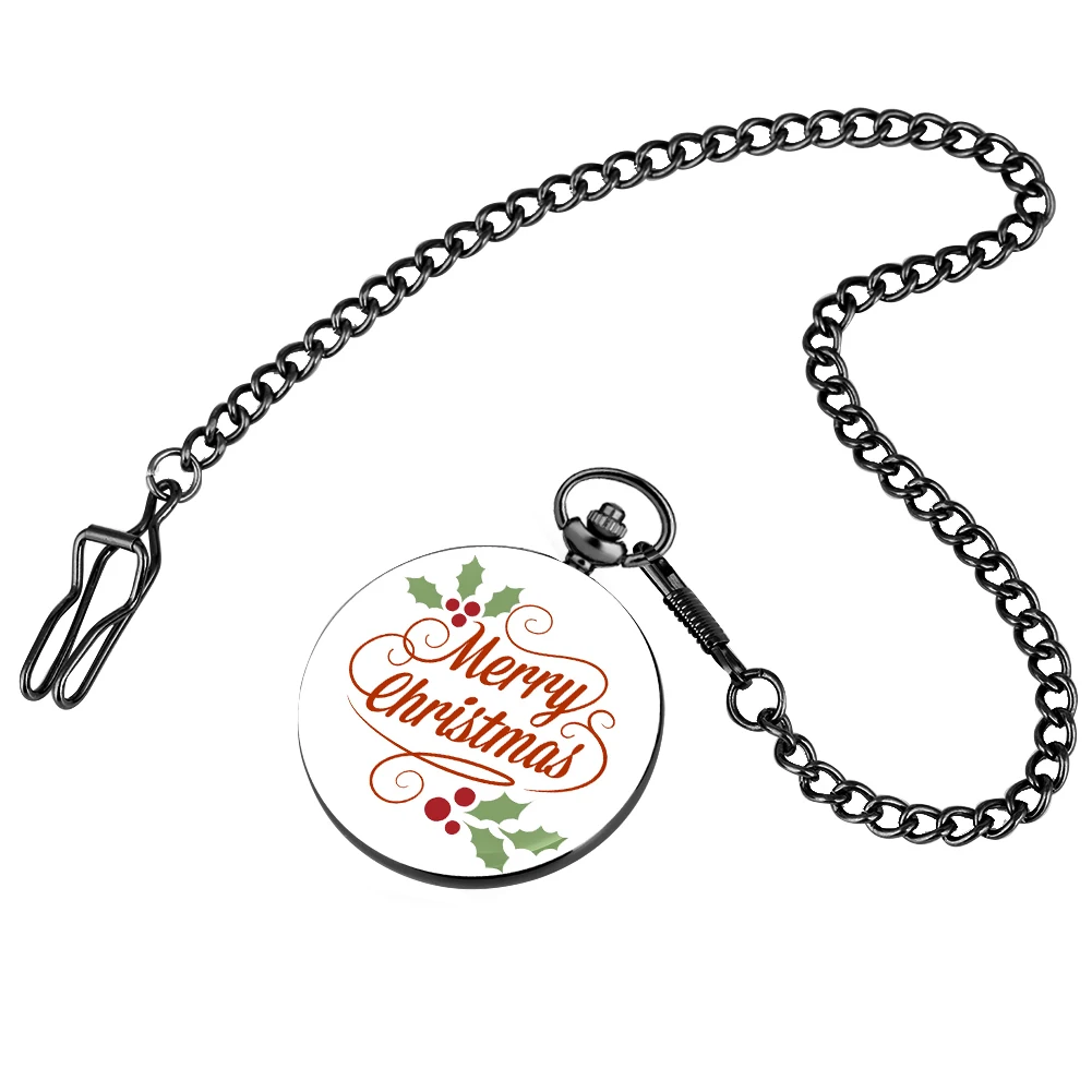 Гладкие Черные кварцевые карманные часы с принтом на тему Рождества...