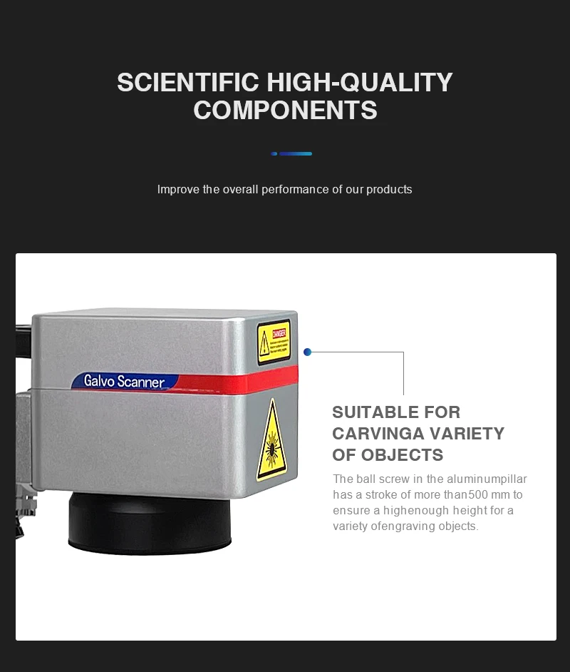 Шариковый винт в алюминиевой колонне имеет ход более 500 мм, чтобы обеспечить достаточно высокую высоту для различных объектов гравировки. Lmдоказательство общей производительности нашей продукции. Подходит для различных предметов carvinga.