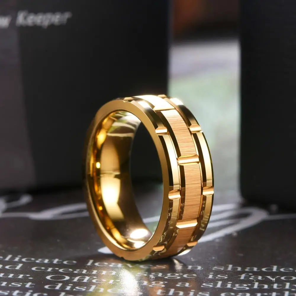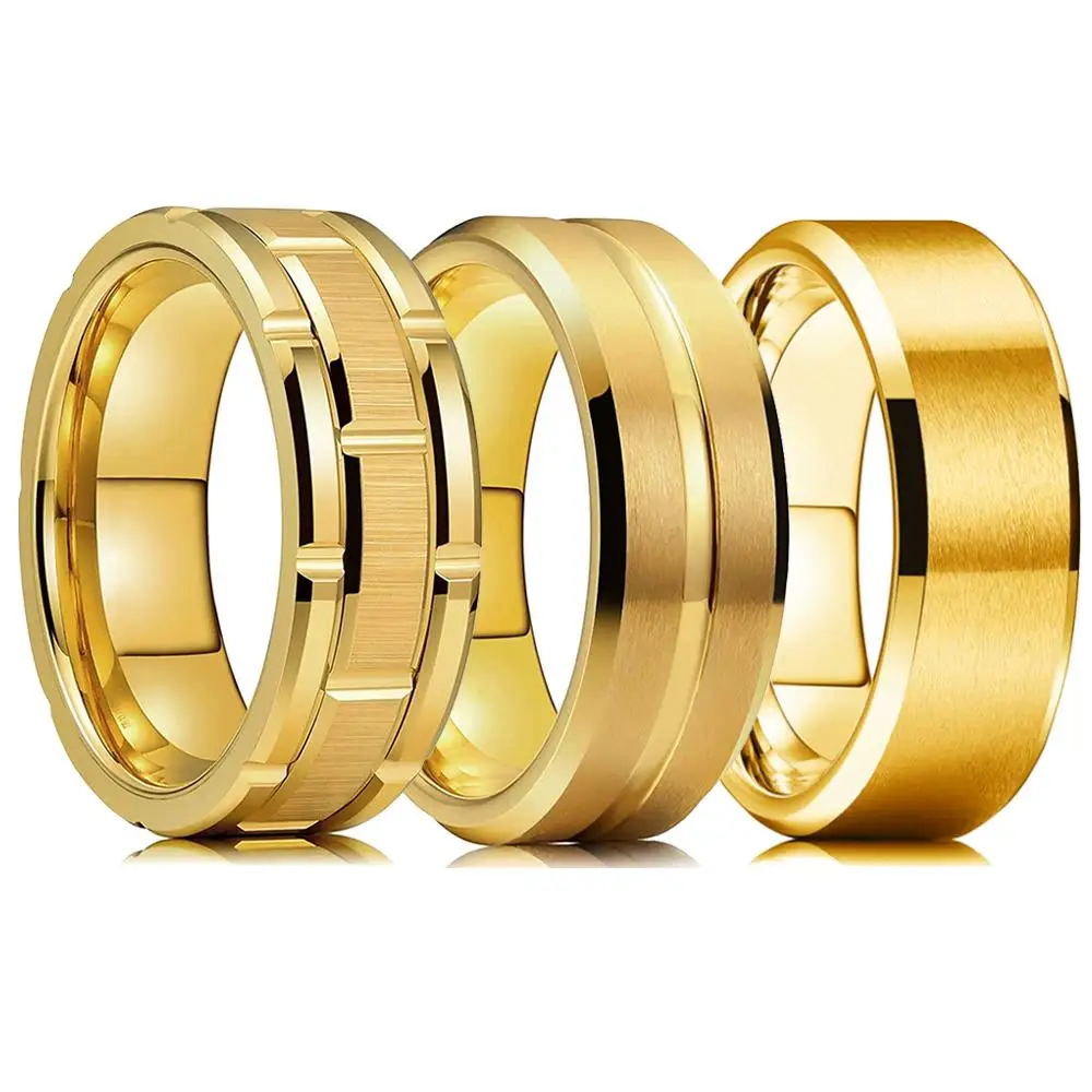 Горячая Распродажа, мужские обручальные кольца из титановой стали 8 мм золотистого цвета, двойные золотые кольца с закругленными краями, матовые вечерние кольца для мужчин