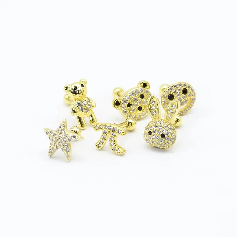 1 шт., 16 г, кристалл, крест, сердце, цветок, корона, луна, хрящ, козелок, серьга, нержавеющая сталь, серьга-гвоздик, спираль, пирсинг, украшения для тела