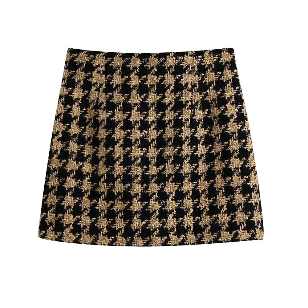 BBWM 2021 Женская твидовая юбка с рисунком гусиные лапки, винтажная Повседневная элегантная Офисная Женская юбка, женская уличная одежда, тонкая мини-юбка с высокой талией, шикарная
