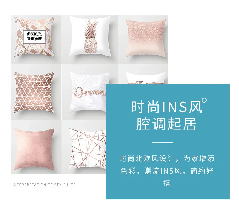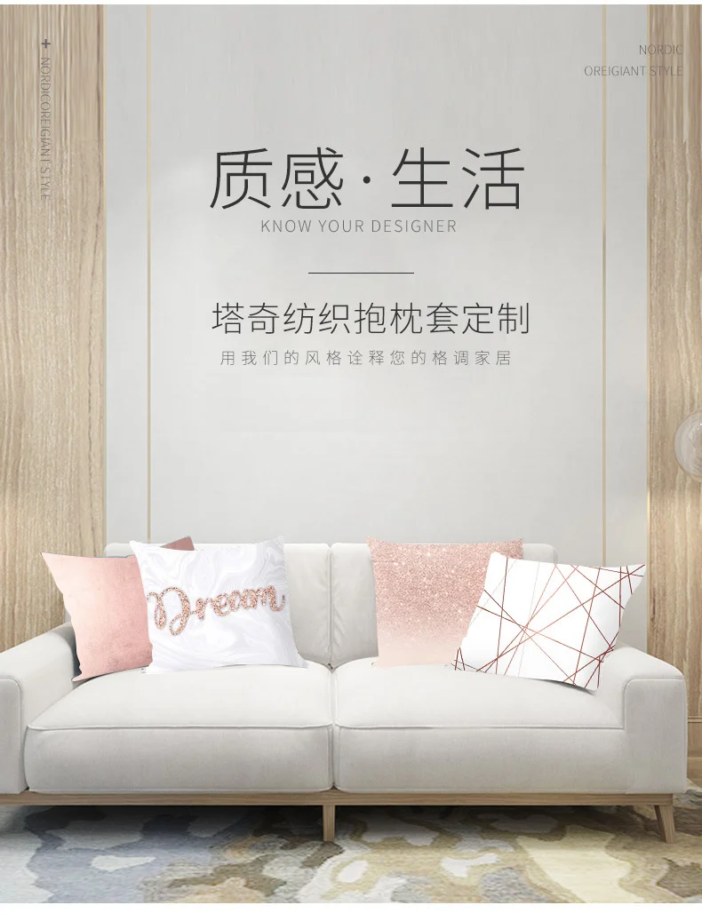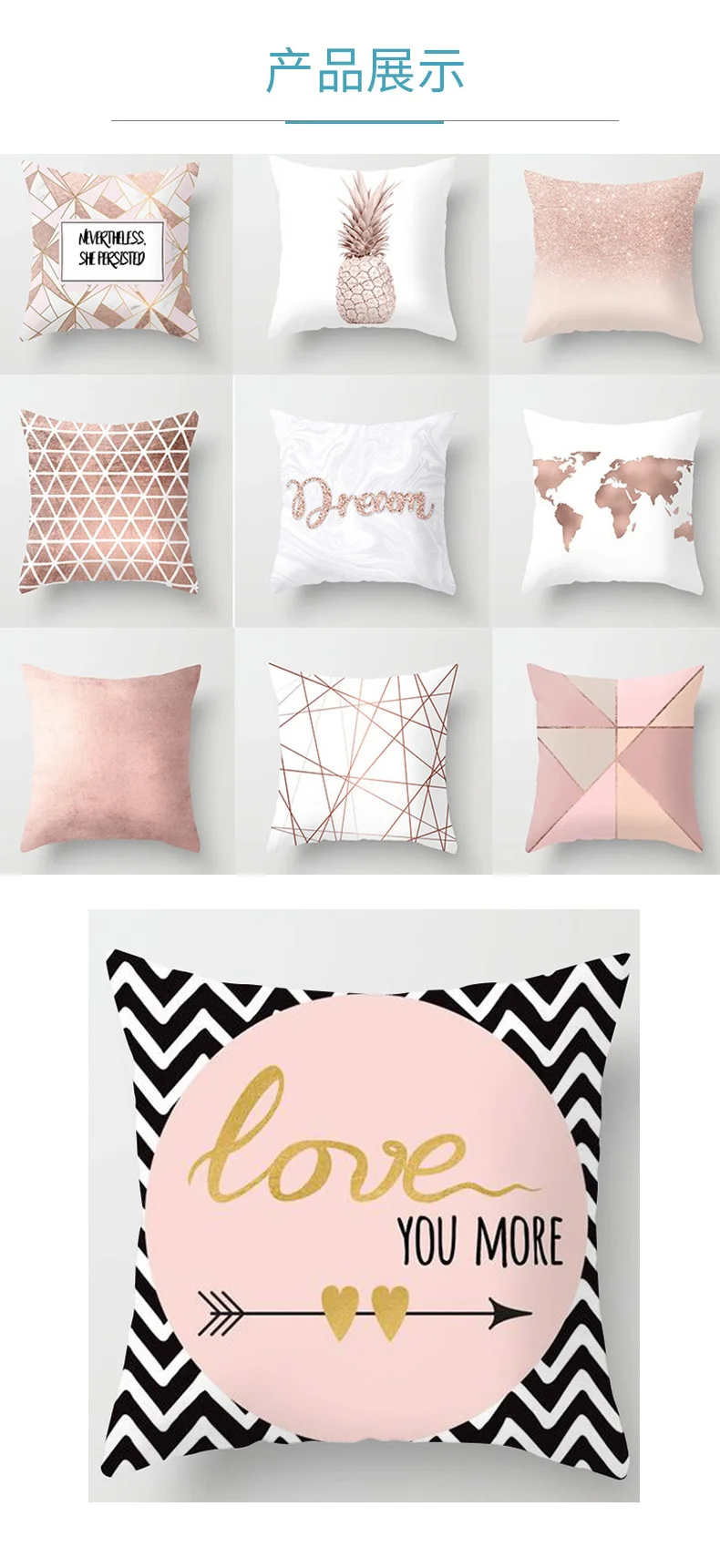 Розовый простой тканевый чехол для подушки с геометрическим рисунком, автомобильный диван без детской подушки, чехол для подушки, наволочка, Подушка 45*45 см