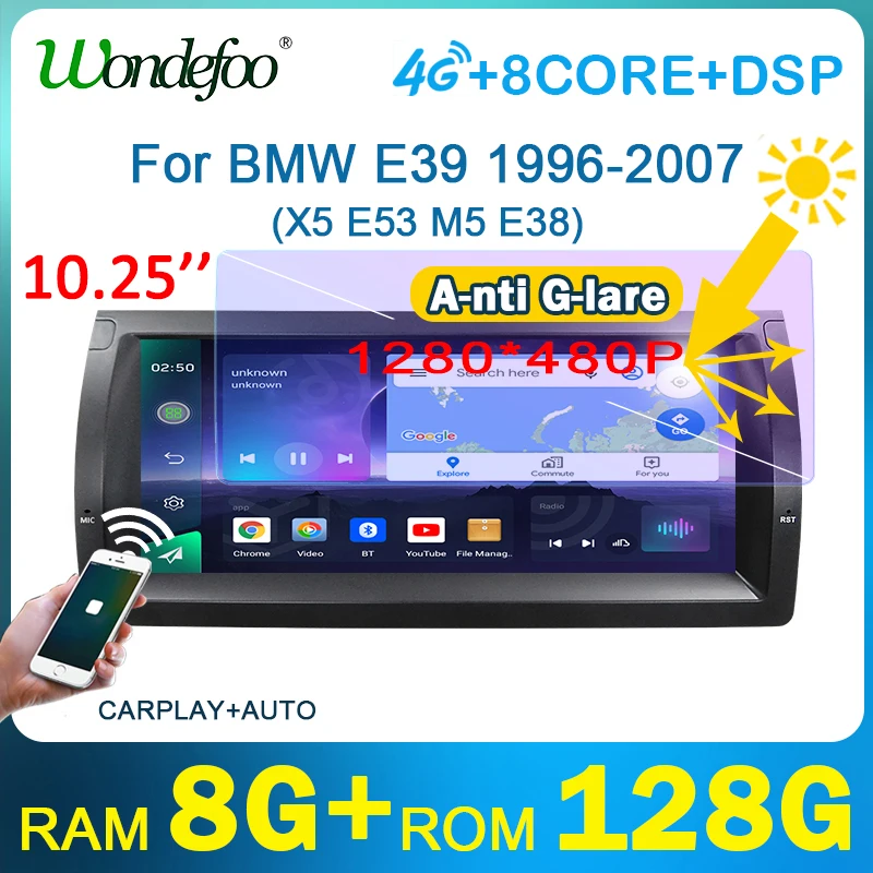 автомагнитола 2дин андройд 10 с экраном магнитола стерео экран для BMW 5 серии E39 1996-2003 X5 E53 M5 CarplayIntelligent system, мультимедийная Автомагнитола видеоплееры Навигация 2DIN DVD мазок магнитофон в машину