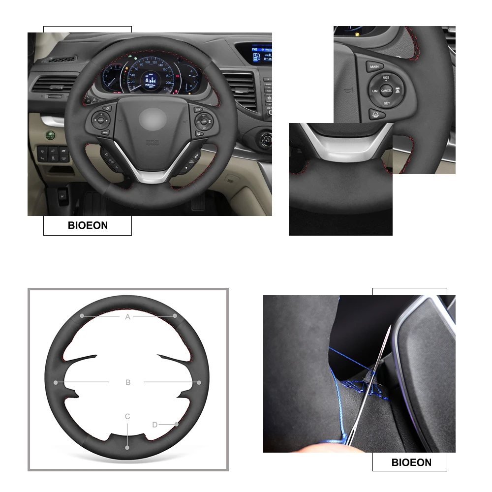 Черный замшевый чехол на руль для Honda CR-V CRV 2012 2013 2014 2015 2016 2017 2018