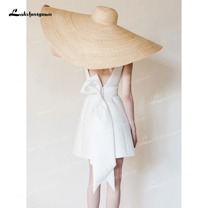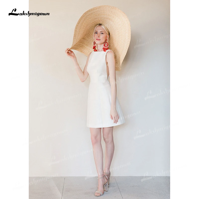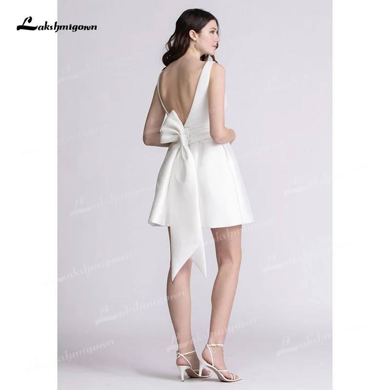 Милое атласное мини-платье без рукавов, с открытой спиной, вырезом лодочкой и бантом, а-силуэт, свадебные платья 2022, robe для вечеринки, свадьбы, Lakshmigown