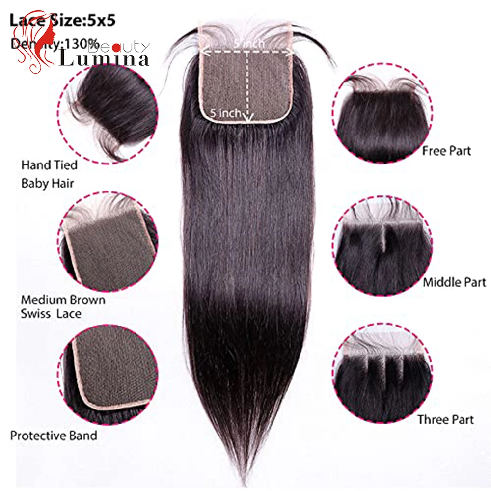 Прямая кружевная застежка бразильские волосы Remy 5x5 кружевная зас...