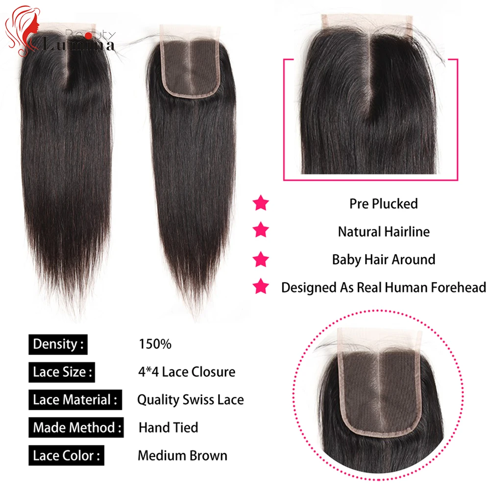 Бразильские прямые человеческие волосы свободная часть 4X4 кружевна...