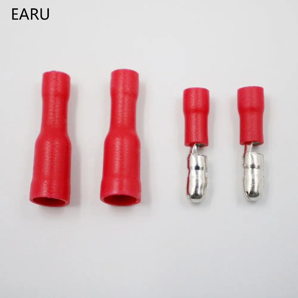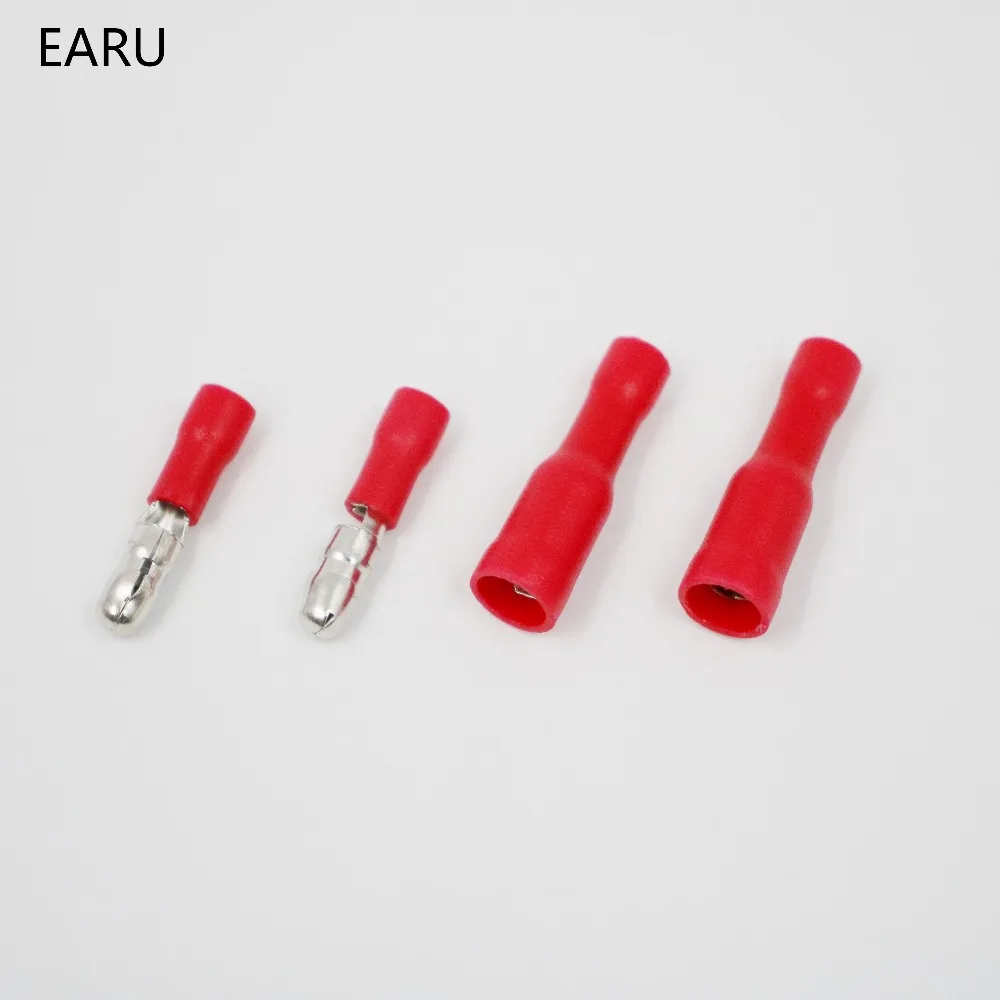 50 шт., красные, мужские, женские, цилиндрические, изолированные соединители, обжимные клеммы, проводной кабель, штепсельная вилка