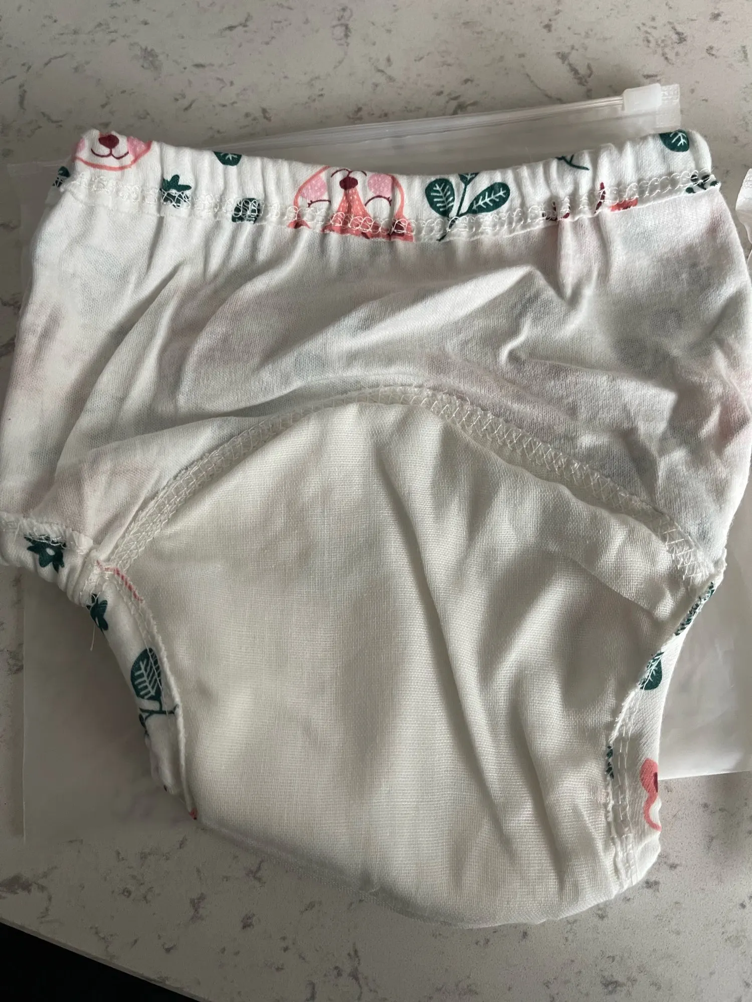 взяла размер 11-15, но они на ребенка от 18 кг. качество на ощупь хорошее, ткань приятная, прослойка между ножек тонкая, доставка долгая почти 2 месяца
