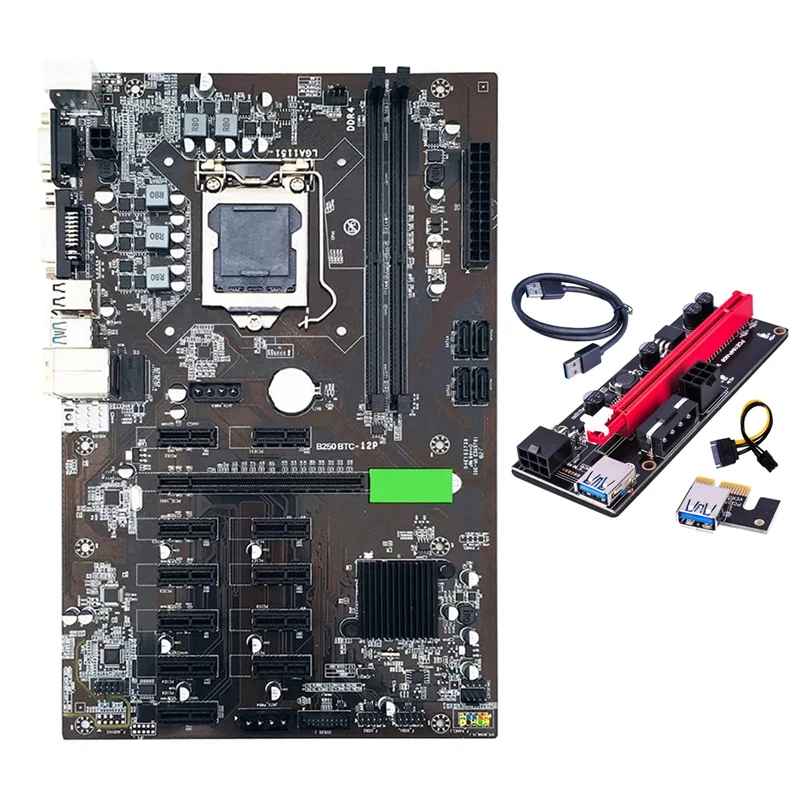 B250 BTC горная материнская плата с VER009S Riser 12XGraphics слот для карты LGA 1151 DDR4 SATA3.0 USB3.0 для BTC Miner