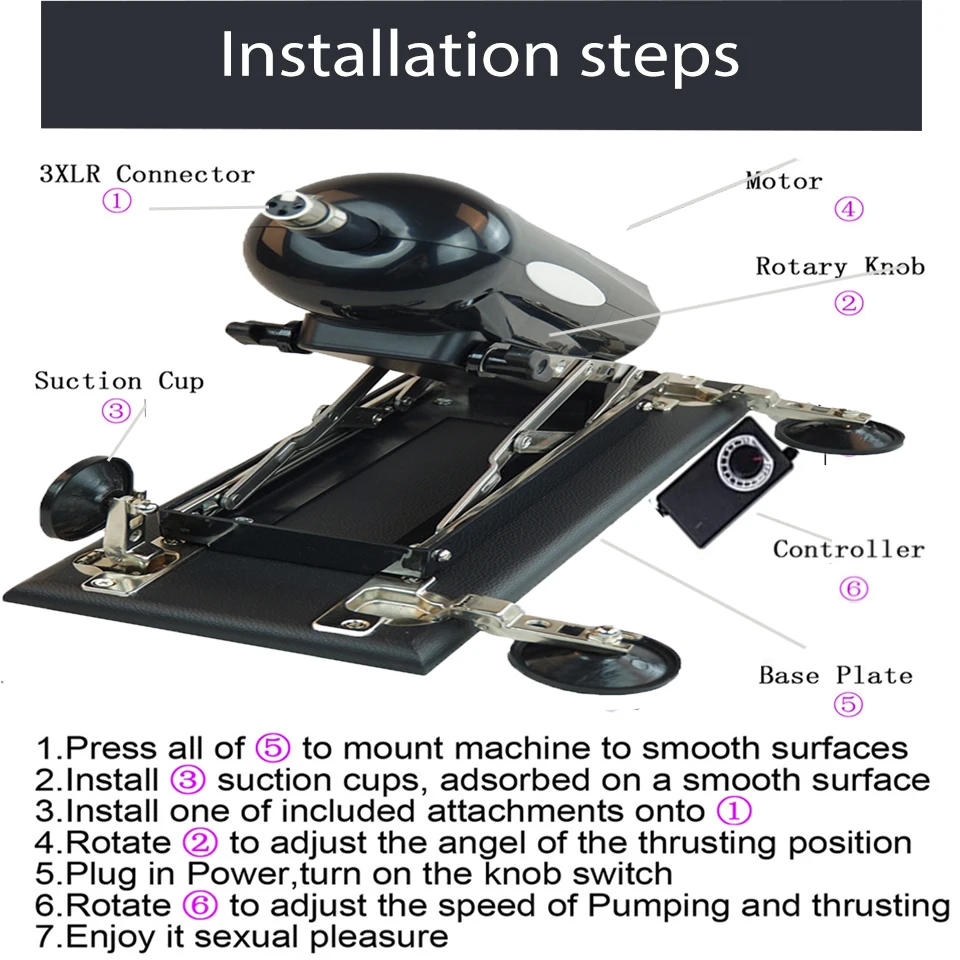 Разъем 3XLRВходное напряжение: от 100 до 240 В (может регулироваться для работы в соответствии с напряжением вашей страны)Выходное напряжение: 12 В/24 В постоянного токаРегулируемый угол: от 0 до 120 градусовСкорость поглаживания: от 70 до 210 ударов в минутуТелескопическое расстояние движения: 6 смИнформация о внешнем виде секс-машиныЦвет: черный, розовый, фиолетовыйРазмер машины: 37 см * 15 см * 15 см (15 дюймов * 6 дюймов * 6 дюймов)Чистая Вес: около 1,75 кгМощность сильнее, использование времени не легко остановить;(Штепсельная Вилка европейского стандарта, штепсельная вилка австралийского стандарта, штепсельная вилка американского стандарта не требует разъема)