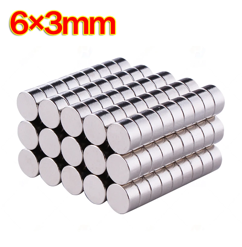 Неодимовый магнит, 100 шт., 6x3, редкоземельный маленький, супер сильный, Круглый, постоянный, 6*3 мм, электромагнит холодильника, NdFeB, никель, магнитный диск