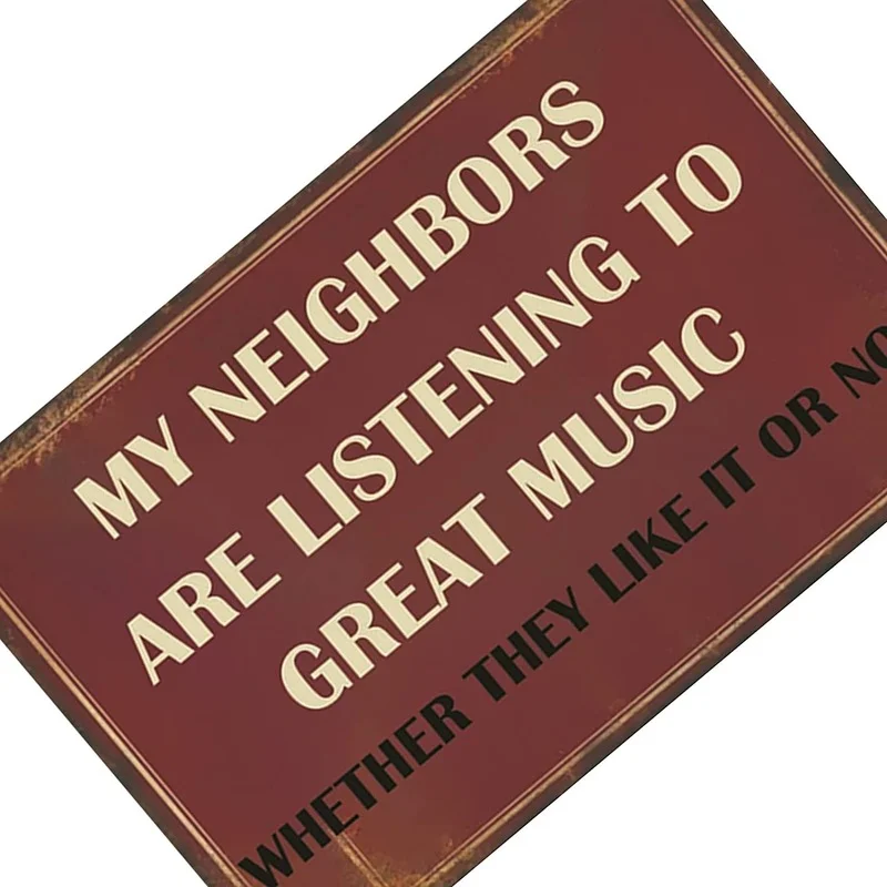 Забавные Саркастические металлические знаки для гаража, мужская пещера, Настенный декор, музыкальные подарки для влюбленных-мои соседи слушают великолепную музыку