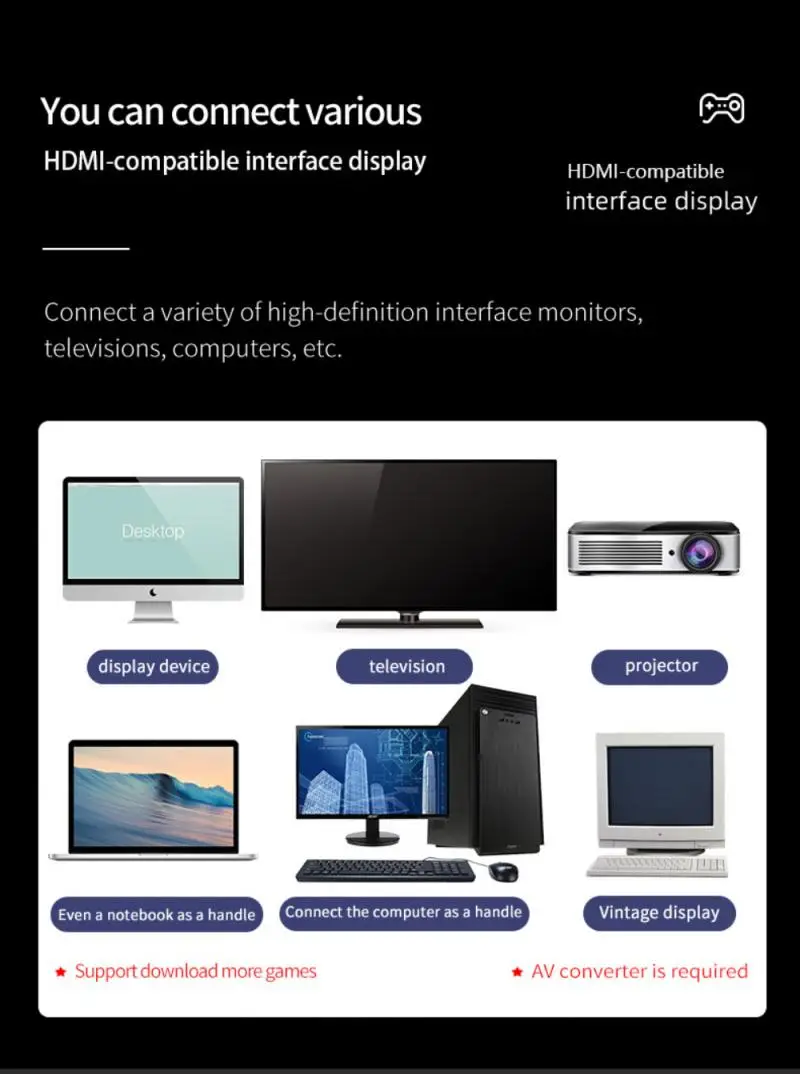 Светильник, маленький корпус, подключи и играй, не занимает места, не влияет на красивую гостиную, играйте в классические ностальгические игры в любое время и в любом месте.