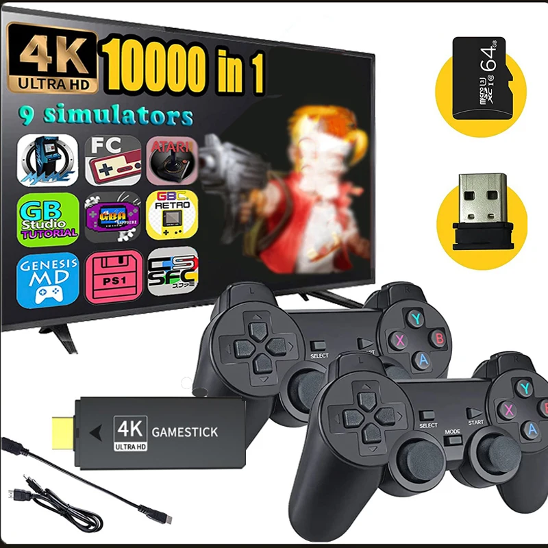 Игровая приставка HD 4K для всей семьи, ТВ, ретро видео, игровая консоль с двойным беспроводным контроллером 2,4 ГГц, поддержка ПК, игр, ТВ, HD выход