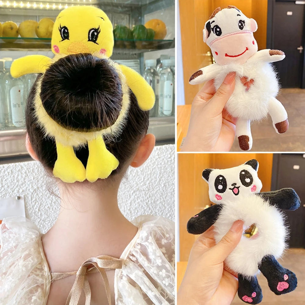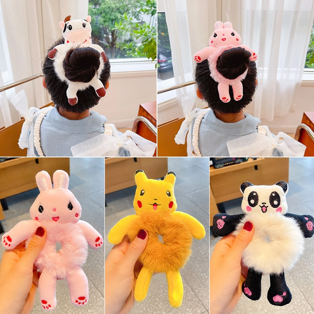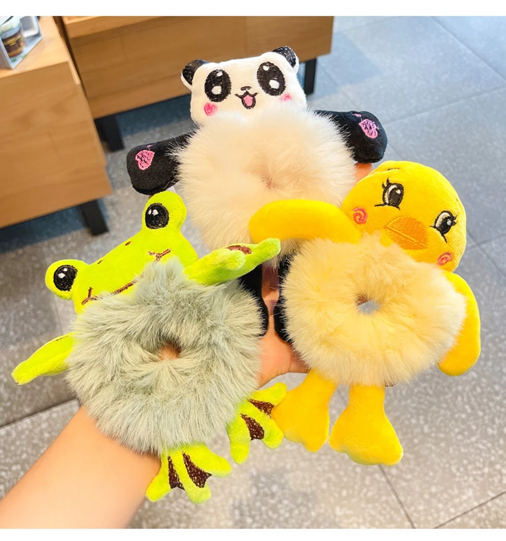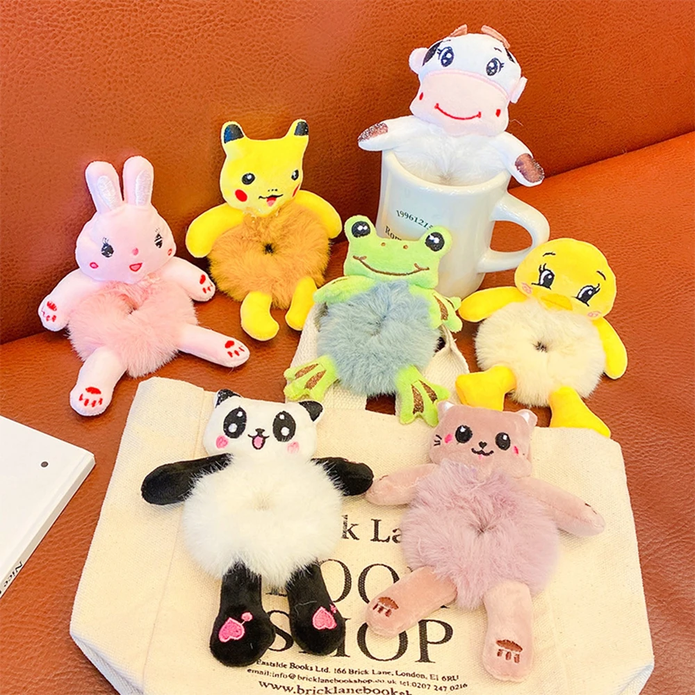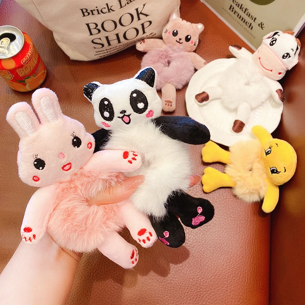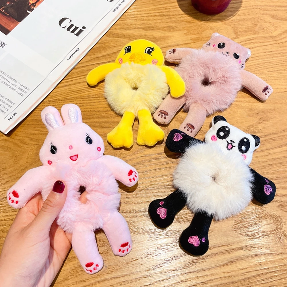 Новые женские милые плюшевые эластичные резинки для волос с изображением панды, кота, кролика, милые украшения для волос, модные аксессуары для волос