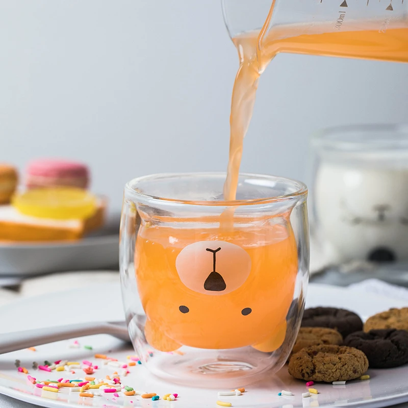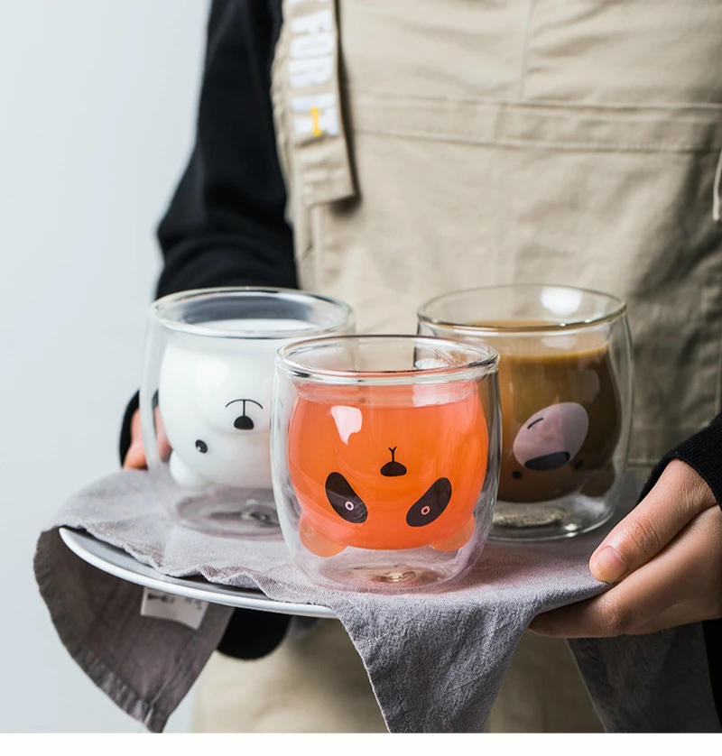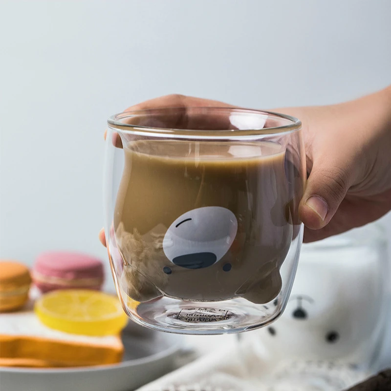 Двойная прозрачная стеклянная чашка, милая забавная кружка для воды с медведем, вакуумная кружка с внутренним слоем и защитой от ожогов, кружка для молока, прочная кружка для кофе, посуда для напитков, подарок
