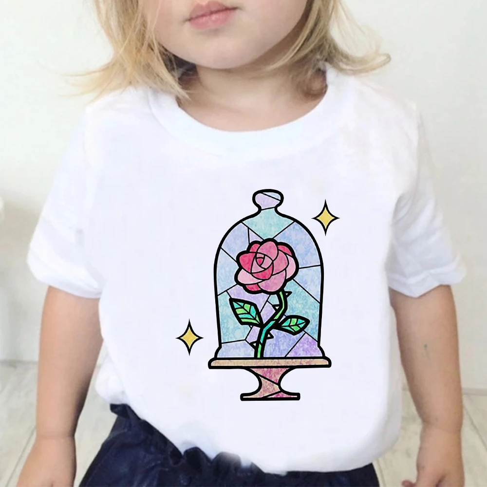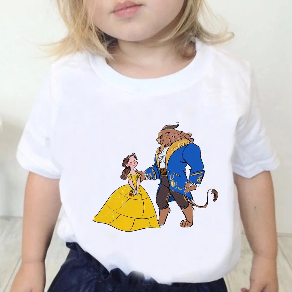 Футболка детская летняя с коротким рукавом и принтом Красавица и Чудовище
