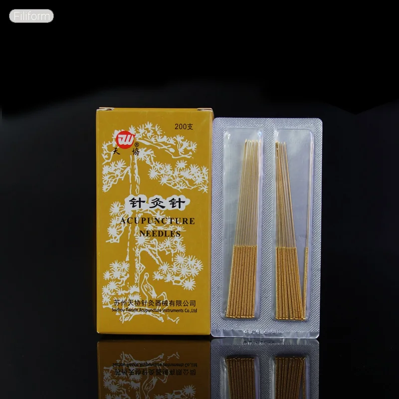 200 шт., одноразовые иглы для акупунктуры с золотым покрытием