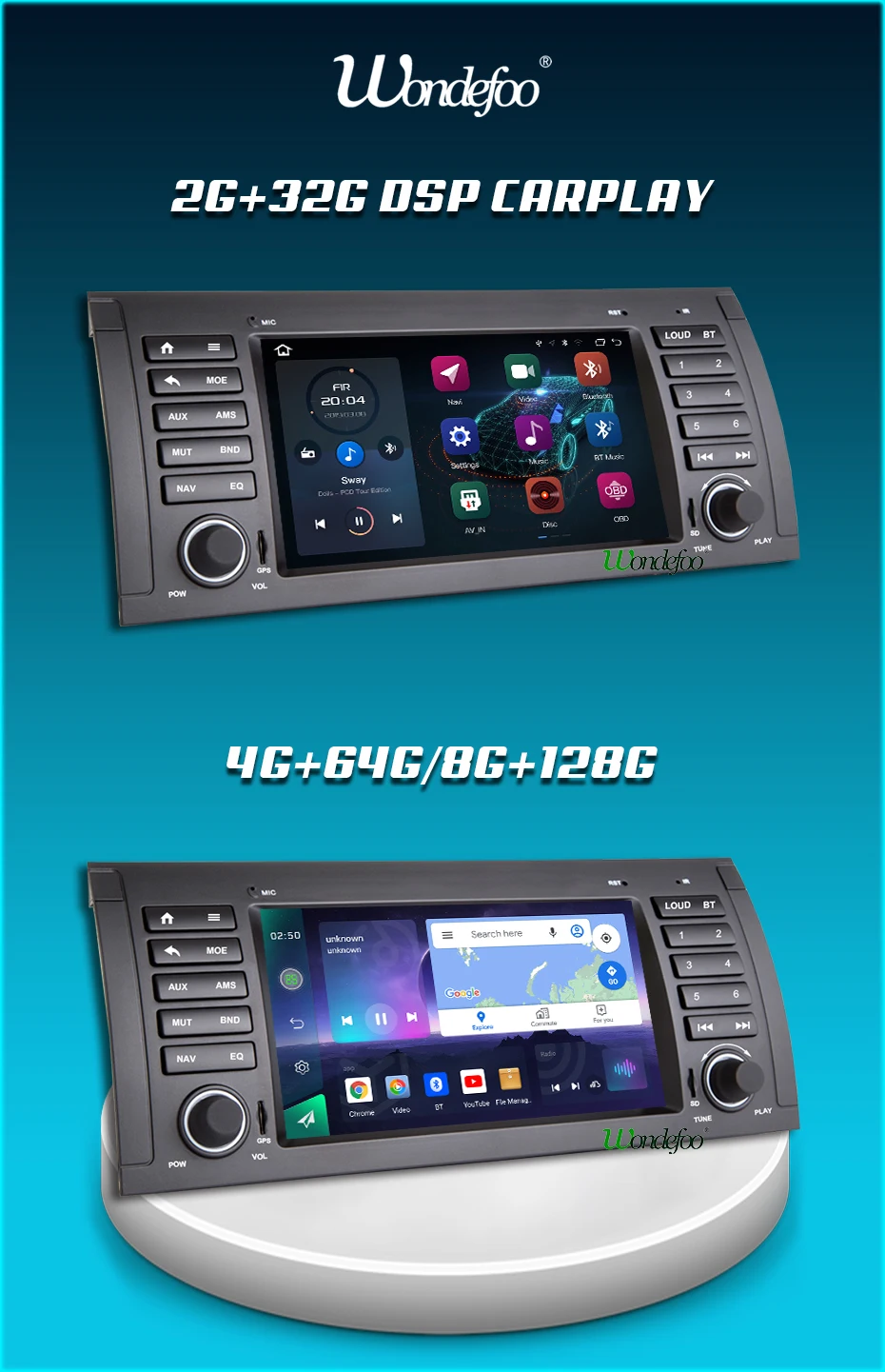 DSP (только 4G + 64G /8G + 128G имеет 32EQ)DSP = Система цифрового усилителя. Он делает звук лучше, чем раньше, и делает радиосигнал лучше, чем раньше. Только менее высокая версия автомобиля имеет заводскую систему DSP на рынке. Если вы покупаете этот чип. В будущем у вашего автомобиля будет DSP система.