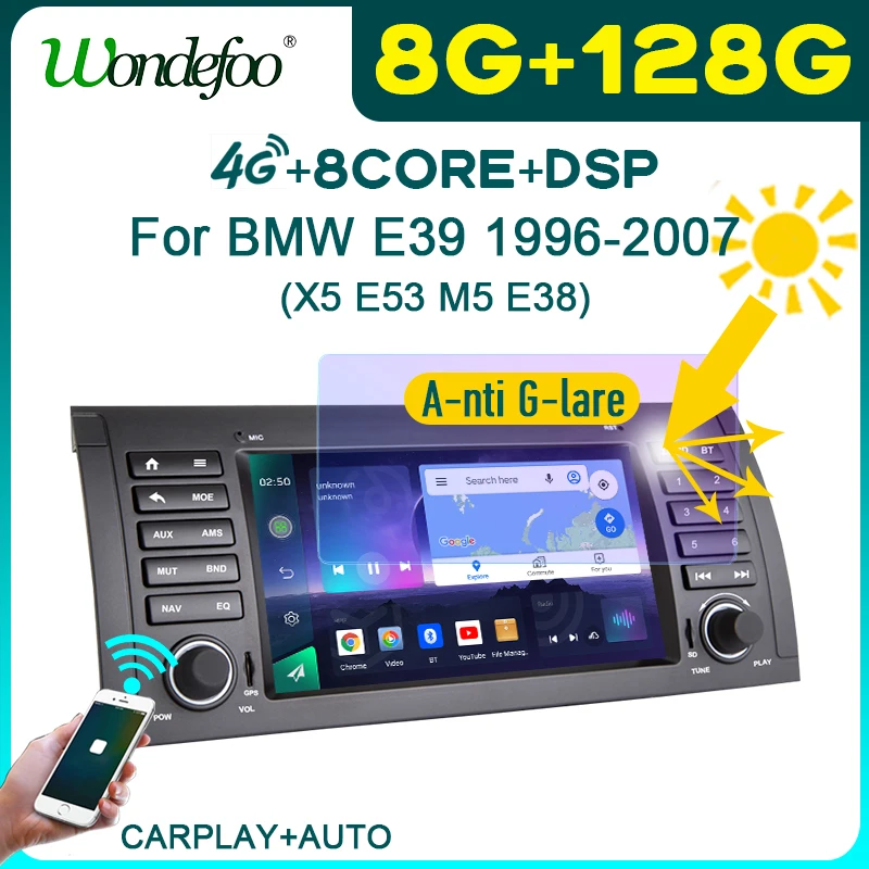 автомагнитола 2дин андройд 10 с экраном магнитола стерео экран для BMW 5 Series E39 X5 E53 M5 7 Series E38 1996-2007 Carplay, видеоплееры, Авторадио интеллектуальные системные Мультимедиа блютуз автозвук 2DIN Навигатор